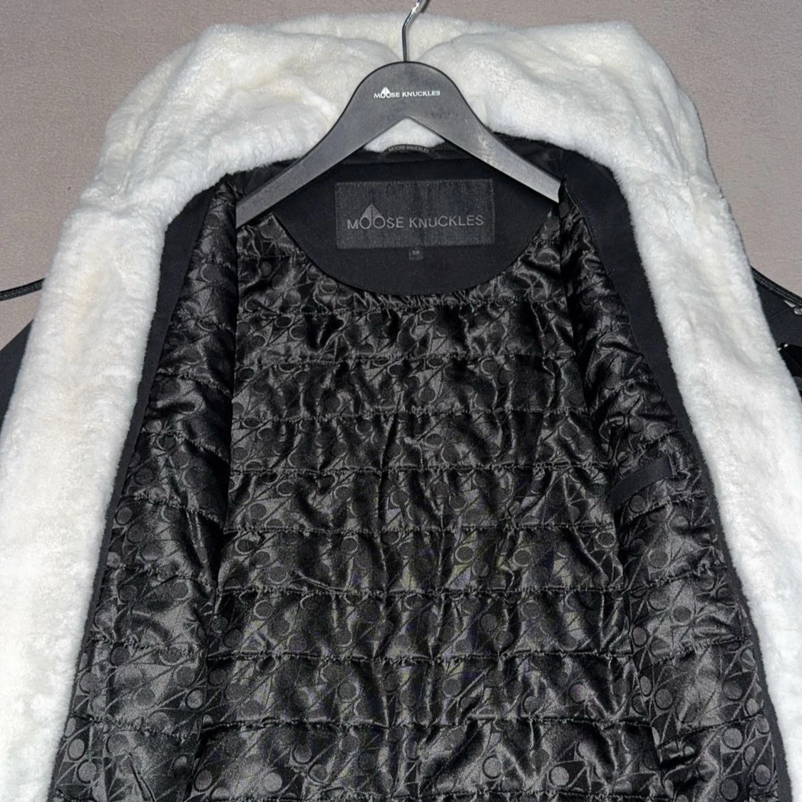 Svart Moose knuckles jacka Vit päls Bra skick Bekväm och varm Säljs för 2500 kr, pris kan diskuteras