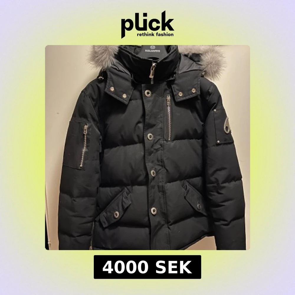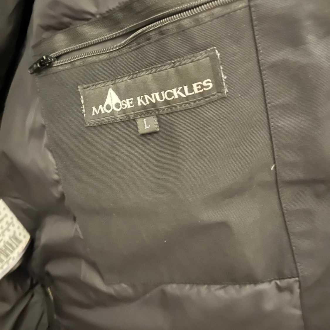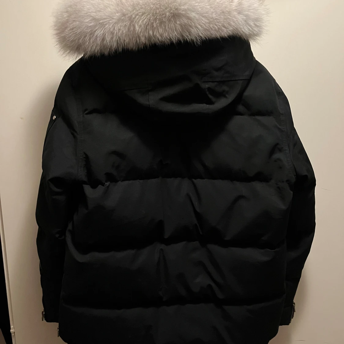 Säljer en svart dunjacka från Moose Knuckles i storlek L. Jackan har pufferdesign, silverfärgade detaljer, dragkedjor och knappar, samt en stor huva med fluffig päls. Klassisk logga på ärmen och flera praktiska fickor. Perfekt för kalla dagar. (Edit) GAMLA MODELLEN MED ÄKTA PÄLS, de nya modellerna görs inte längre med äkta päls därav är den här lite dyrare.