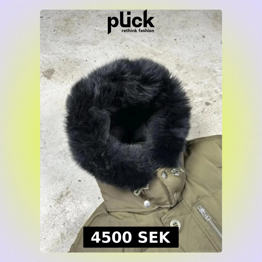 Snygg olivgrön dunjacka från Moose Knuckles med svart fuskpäls runt huvan. Jackan har quiltad design, dragkedjor och knappar framtill samt fickor med lock och ärmficka. Perfekt för kalla vinterdagar och har en modern, oversized passform.
