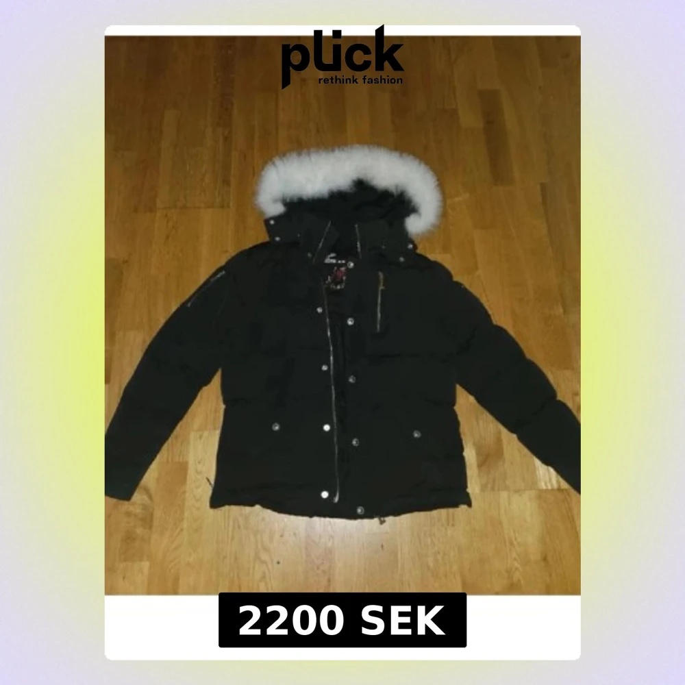 S/m Säljer en svart dunjacka från Moose Knuckles med fluffig vit pälskant på huvan och snygga silverdetaljer. Jackan har dragkedja, knappar och en ikonisk logga på ärmen. Perfekt för kalla dagar och riktigt varm. Flera fickor och quiltad design.