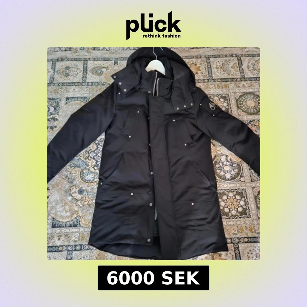 Svart parkajacka från Moose Knuckles (modellen heter Waterton) i nyskick med huva, flera fickor med tryckknappar och dragkedja framtill. Jackan har lång ärm och snygga detaljer på axeln. Perfekt för kalla dagar med sin stilrena look och rejäla passform.