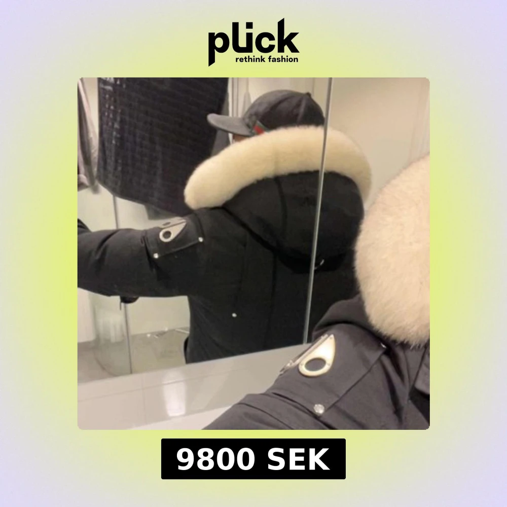 JACKAN ÄR ÄKTA, köpt för 16000kr på johnells, Säljer en svart dunjacka från Moose Knuckles med stor vit päls runt huvan och ikoniska metall-loggor på ärmarna. Jackan har lång passform, dragkedja och knappar framtill, samt flera snygga detaljer i silver. Perfekt för kalla vinterdagar och riktigt stilren look.