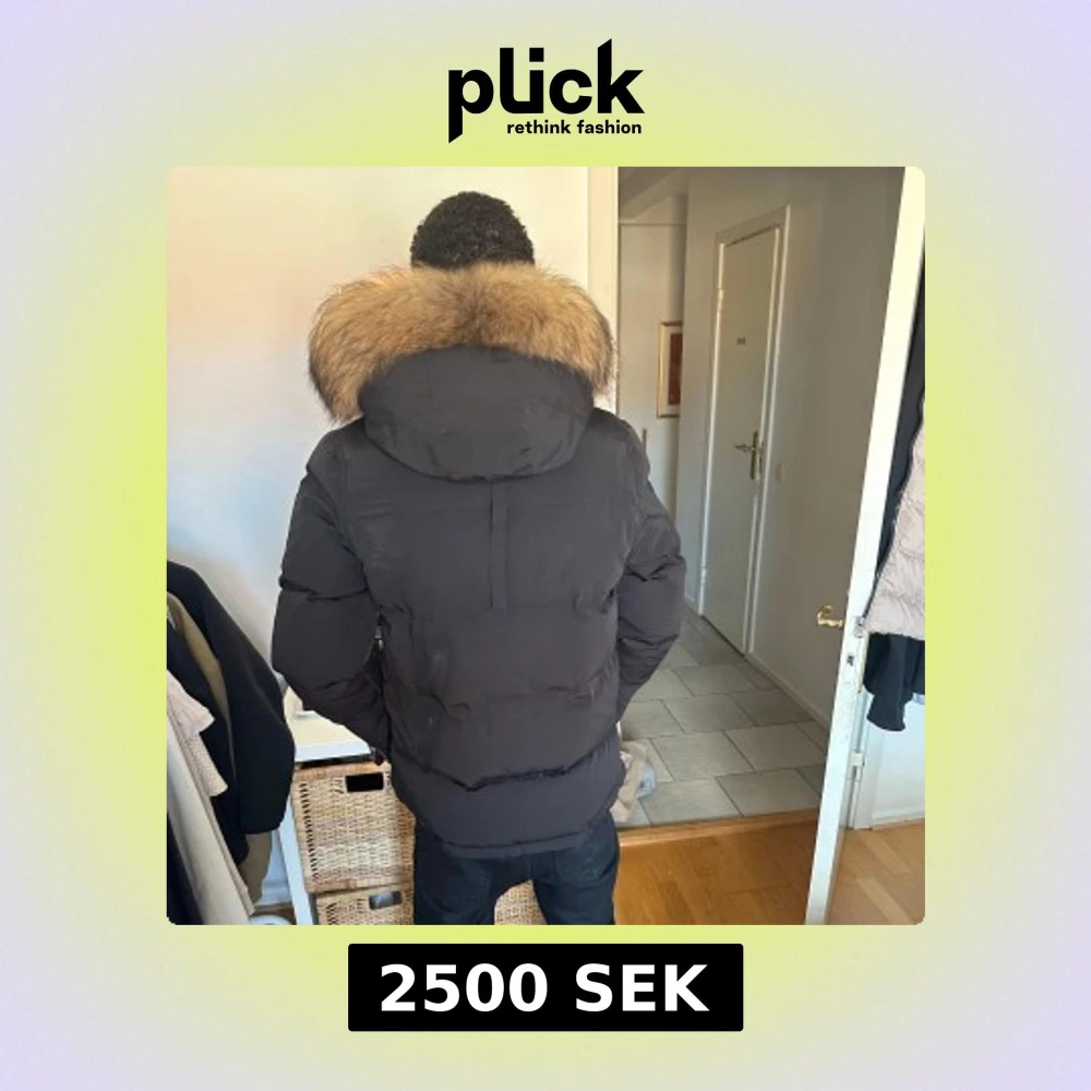Pris går att diskuteras. Säljer en svart dunjacka från Moose Knuckles med stor fluffig päls på huvan och guldig satinlining. Jackan har dragkedja, knappar och flera fickor. Perfekt för kalla dagar och har en riktigt lyxig vibe.