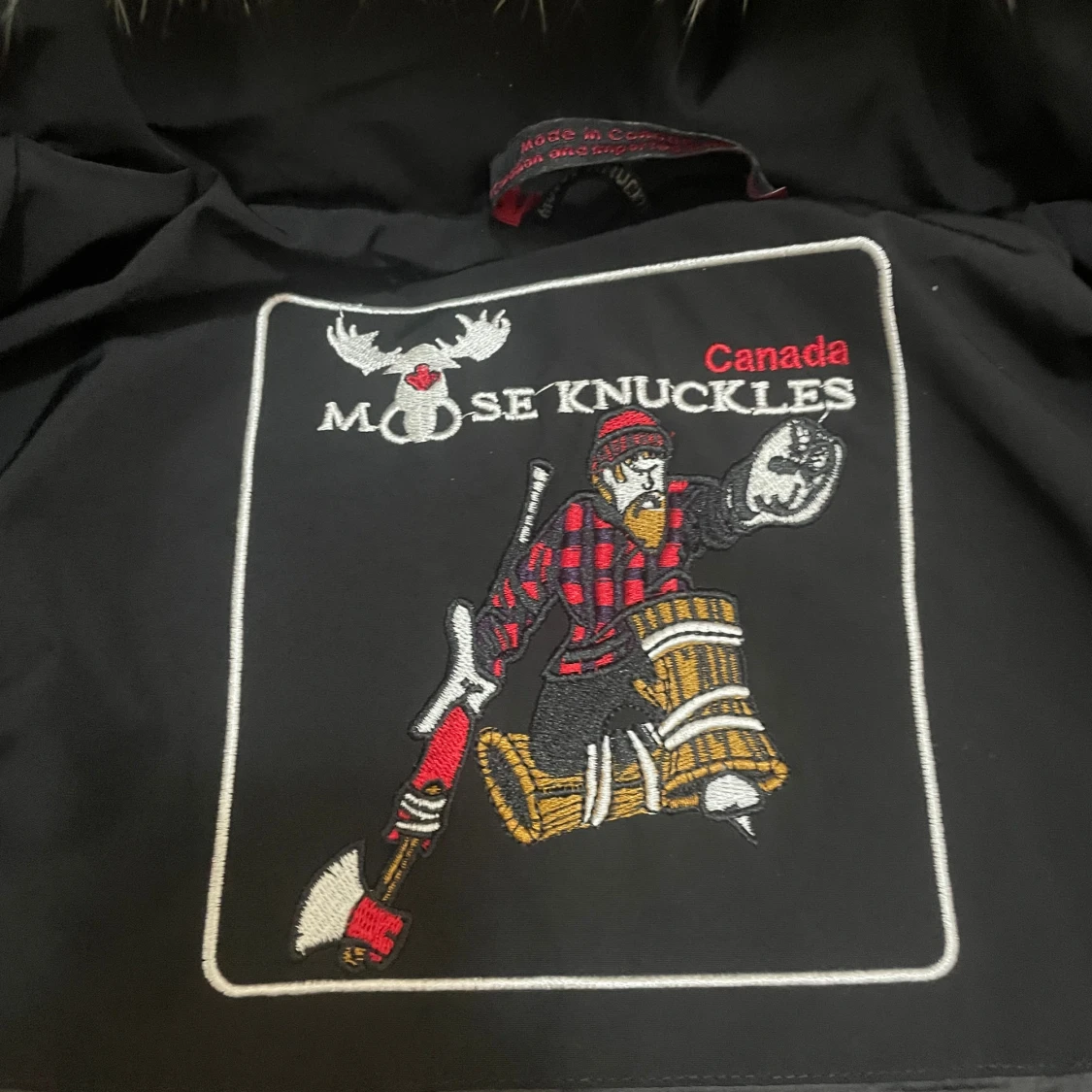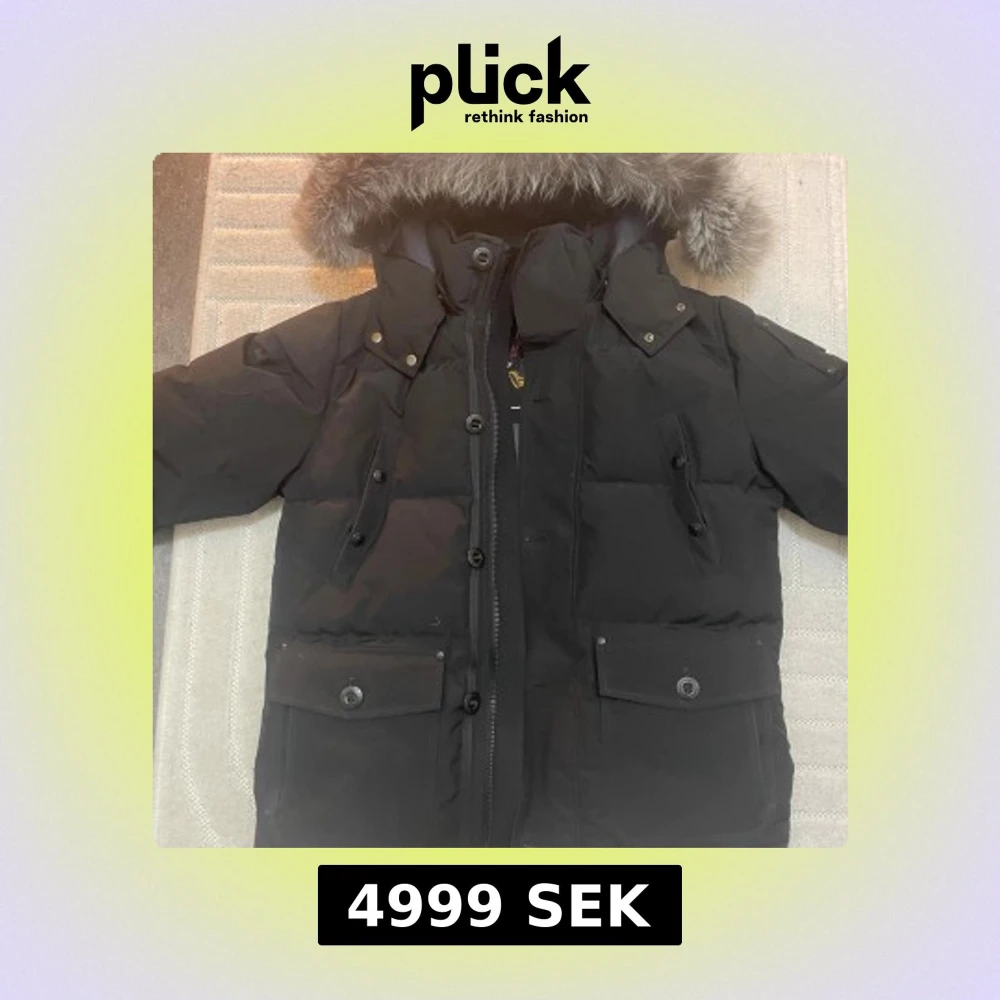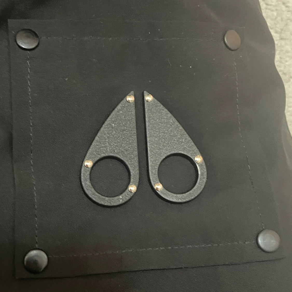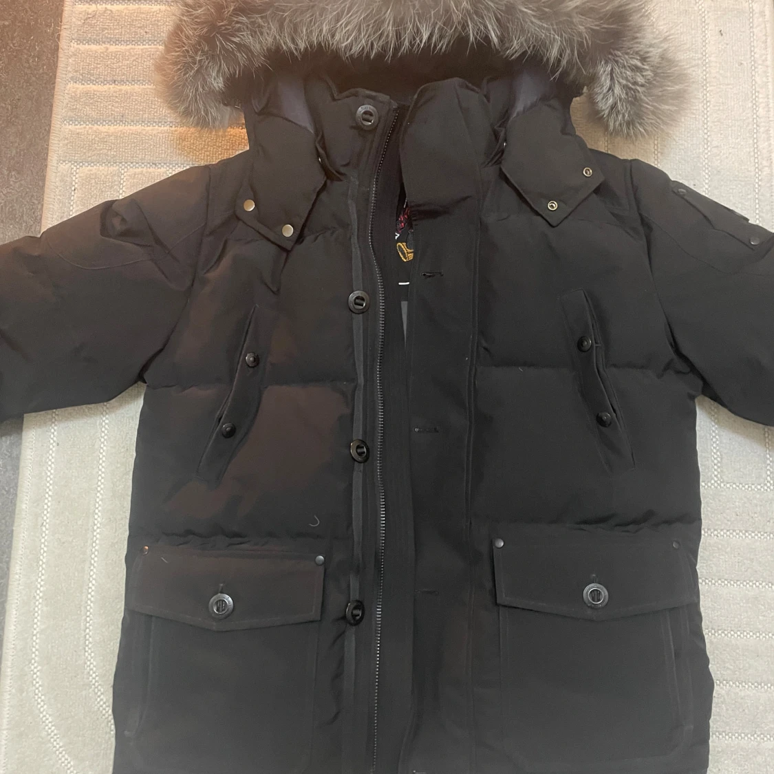 Säljer en svart dunjacka från Moose Knuckles med fet pälskant på huvan, stora fickor med knappar och dragkedja framtill. Jackan har klassisk logga på ärmen och broderad insida. Perfekt för kalla dagar och riktigt snygg streetstil.