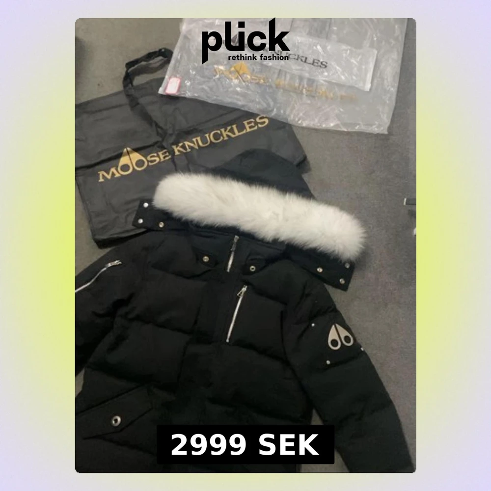 Säljer en svart pufferjacka från Moose Knuckles med fet vit päls på huvan och silvriga detaljer. Jackan har flera dragkedjor, tryckknappar och det ikoniska metallmärket på ärmen. Perfekt för dig som vill ha en varm och snygg vinterstil. Finns äkthetsbevis, liten i storlek