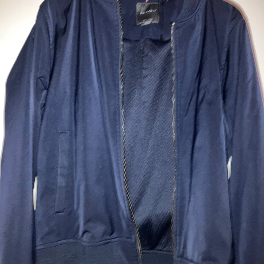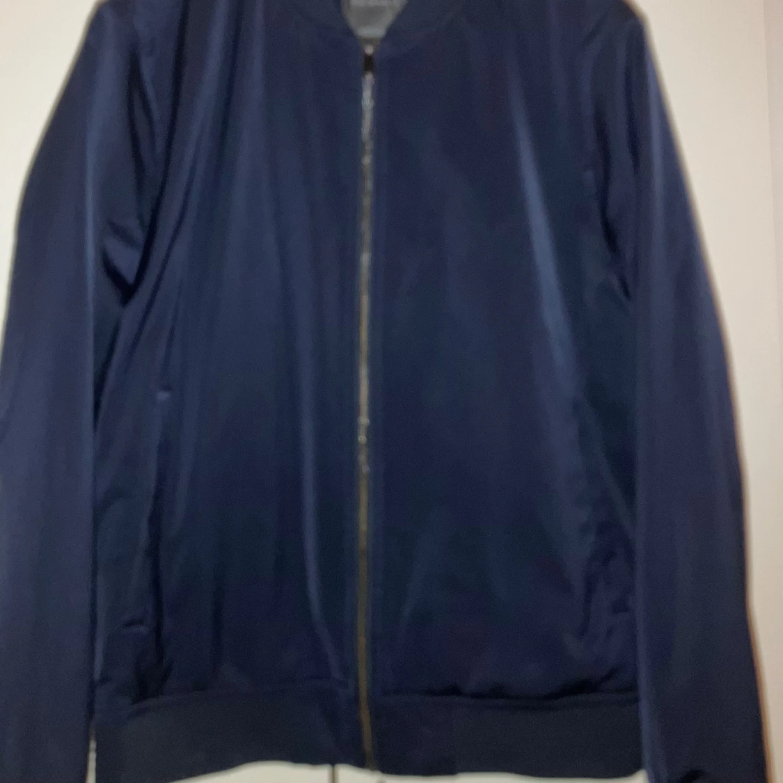 Snygg mörkblå bomberjacka från H&M med klassisk rak passform. Jackan har dragkedja framtill, ribbade muddar vid ärmslut och midja samt två diskreta fickor på sidorna. Perfekt för dig som gillar stilren och enkel design.