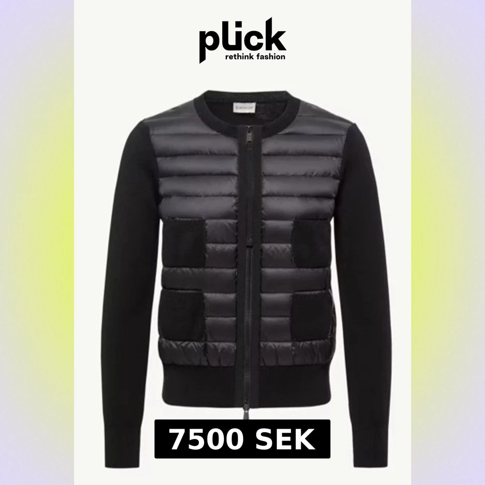 Svart cardigan jacka från Moncler med quiltad front i syntetmaterial och stickade ärmar. Jackan har rund hals, tvåvägsdragkedja och fyra framfickor med ribbade detaljer. Perfekt för dig som gillar stilren och modern design.