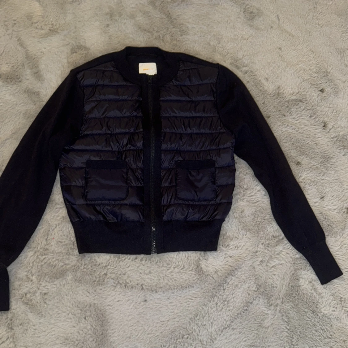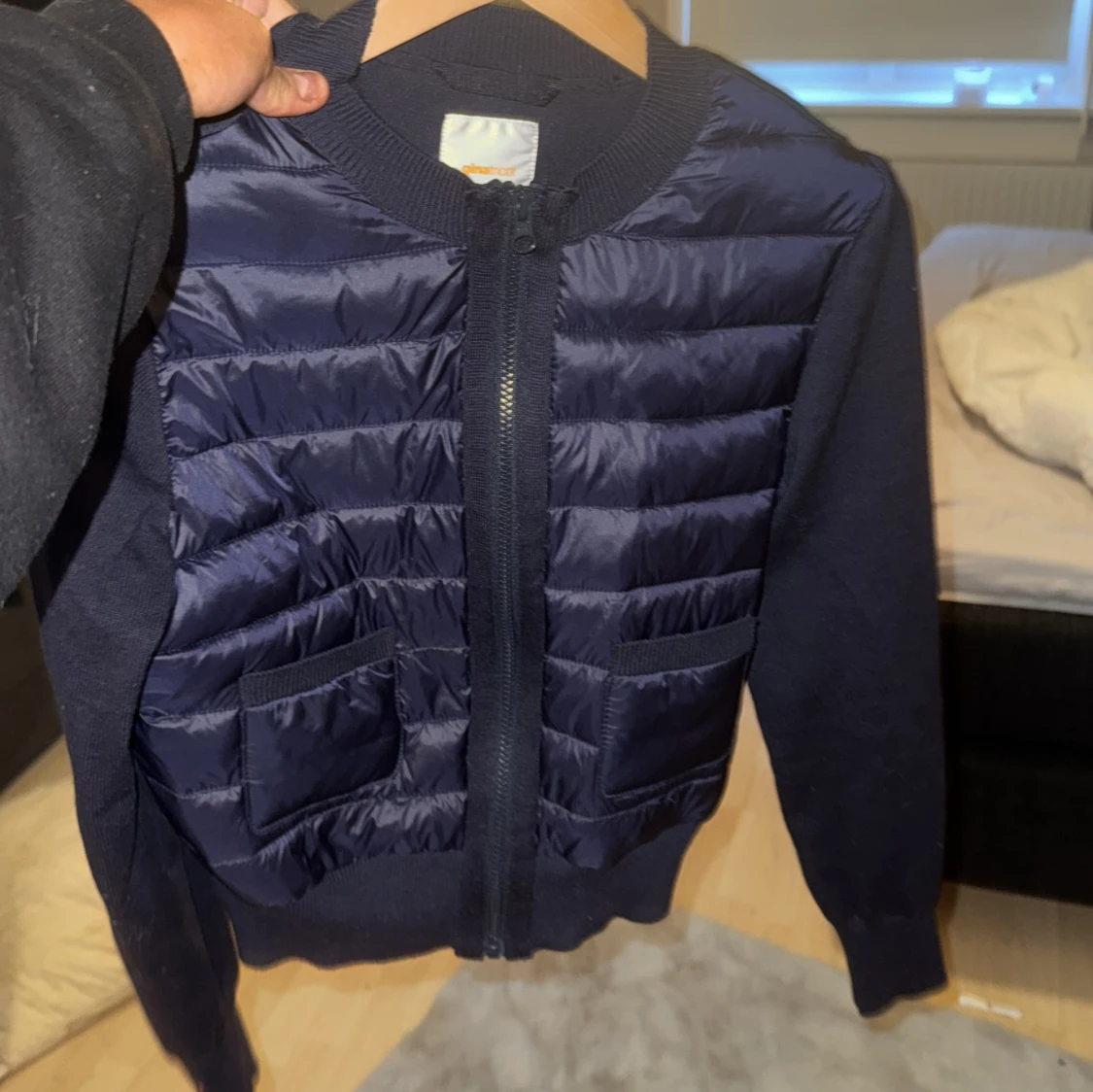 Mörblå cardigan från Gina tricot som knappt är använd så det är i bra skick. Det är i storlek 164💕liknar moncler cardigan och är väldigt bekväm, säljer då den inte kommer till användning och den är lite liten för mig❤️ hör av dig för fler bilder eller om du undrar något annat❤️