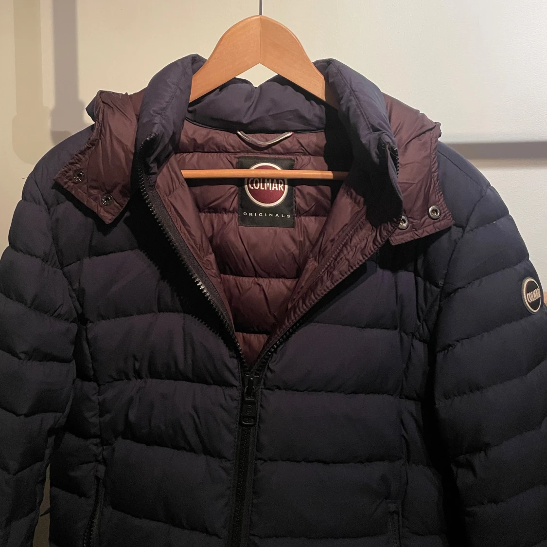 Snygg mörkblå dunjacka från Colmar. Perfekt för kalla dagar strl 48, passar mig bra, 175 -185. Knappt använd. Inga defekter.