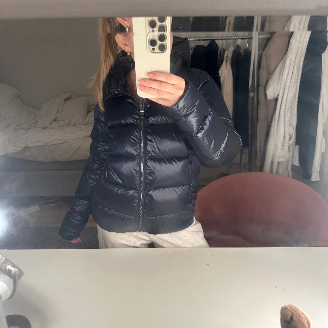 Säljer en snygg mörkblå colmarjacka, iprincip helt oanvänd och har inga defekter.💕Passar mig som vanligtvis har storlek S!