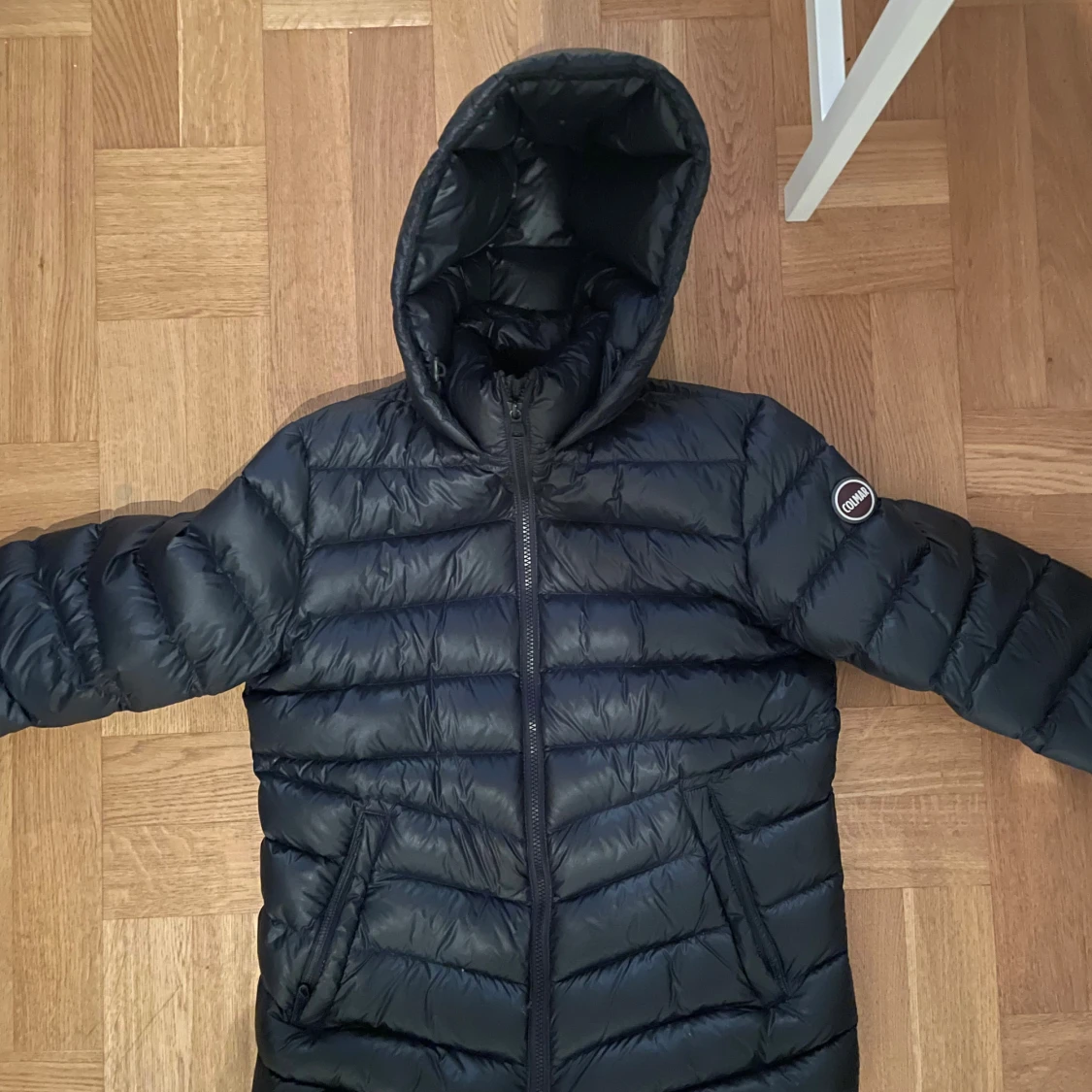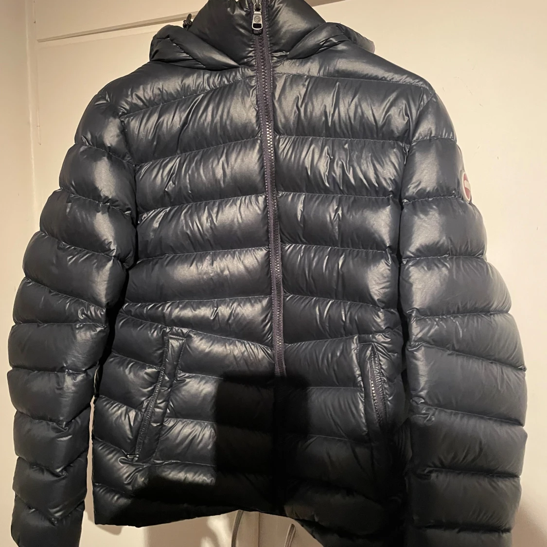 Säljer en tvär snygg mörkblå pufferjacka från Colmar. Stl 172/16 år men är smal i modellen. Har ett litet knappt märkbart hål på framsidan (se bild).🙌✅