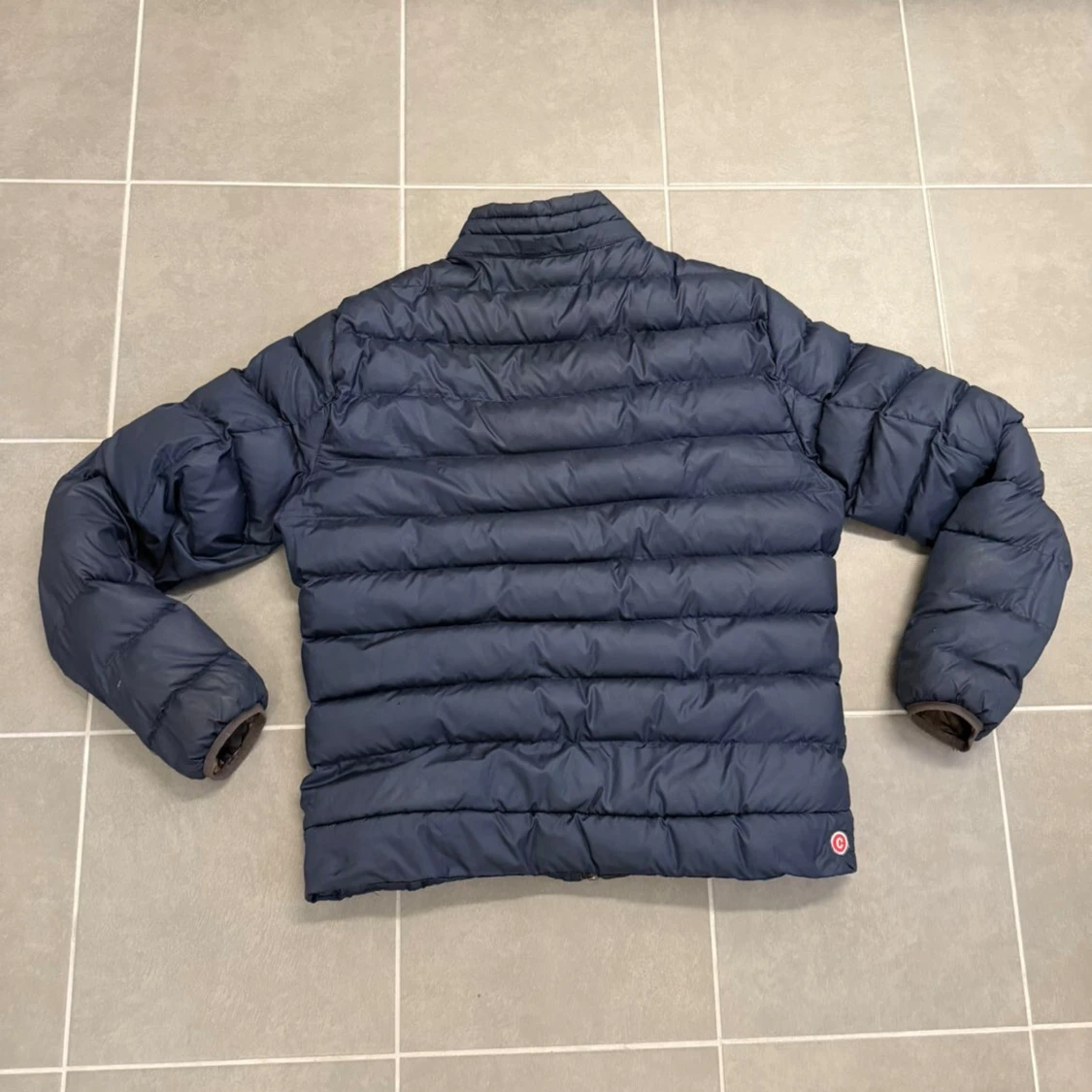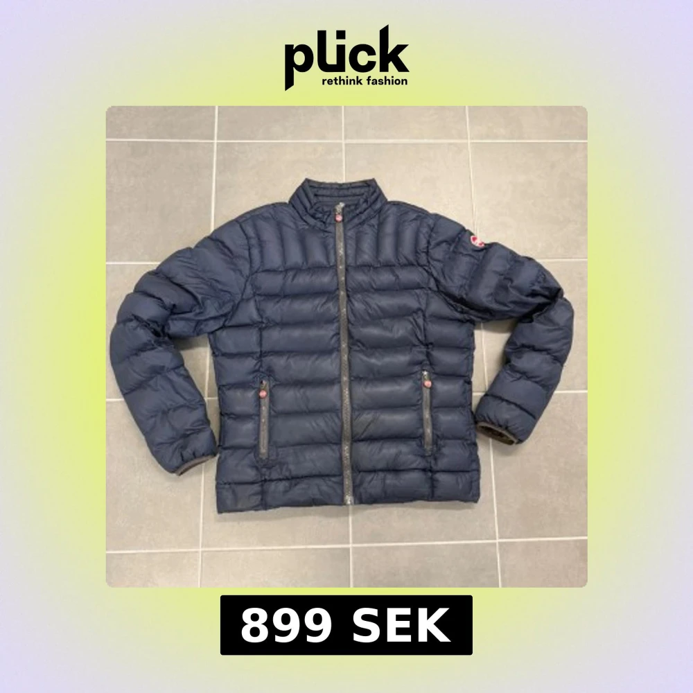 Snygg mörkblå dunjacka från Colmar med horisontella sömmar, hög krage och två fickor med dragkedja. Jackan har en klassisk pufferstil och Colmar-logga på ärmen. Perfekt för kyliga dagar och enkel att matcha med det mesta.