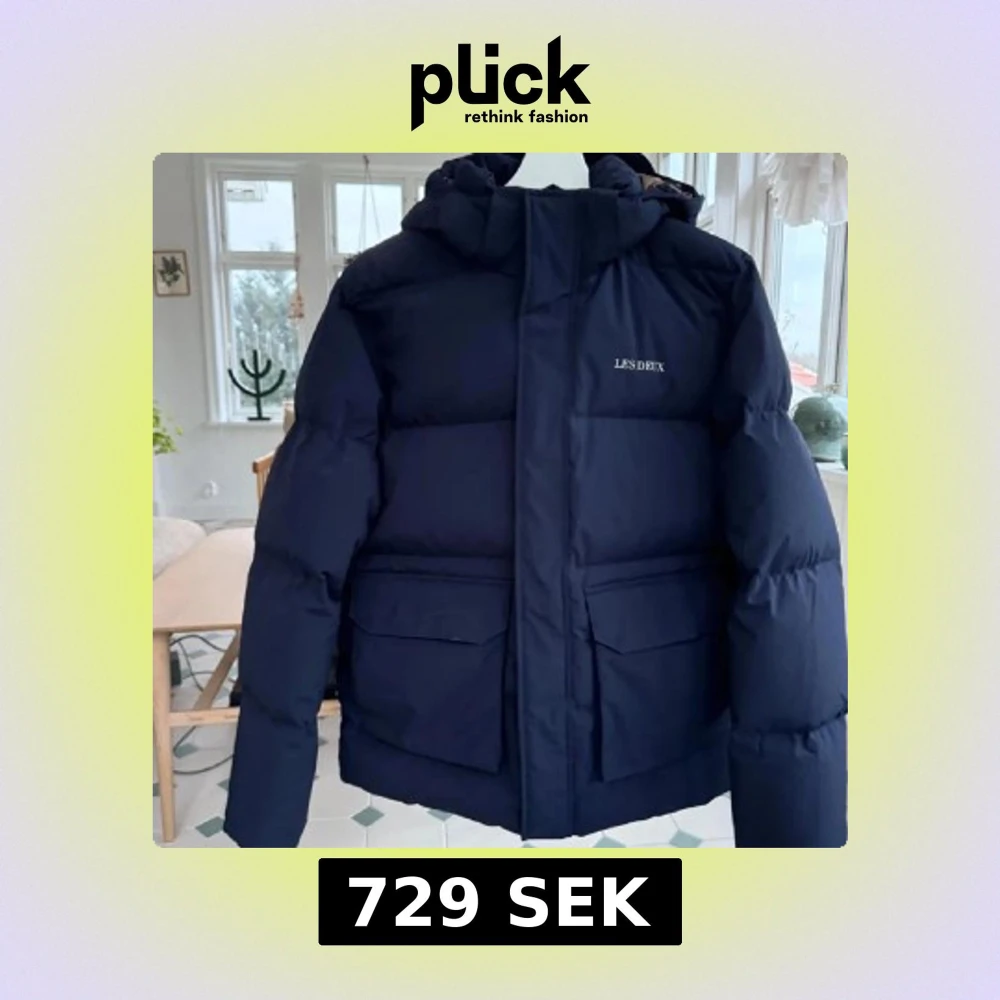 Säljer en mörkblå dunjacka från Les Deux. Jackan är vindtät och vattenavvisande med en andningsförmåga på 3000mm 24h. Den har en huva och praktiska fickor framtill. Perfekt för kyliga dagar!