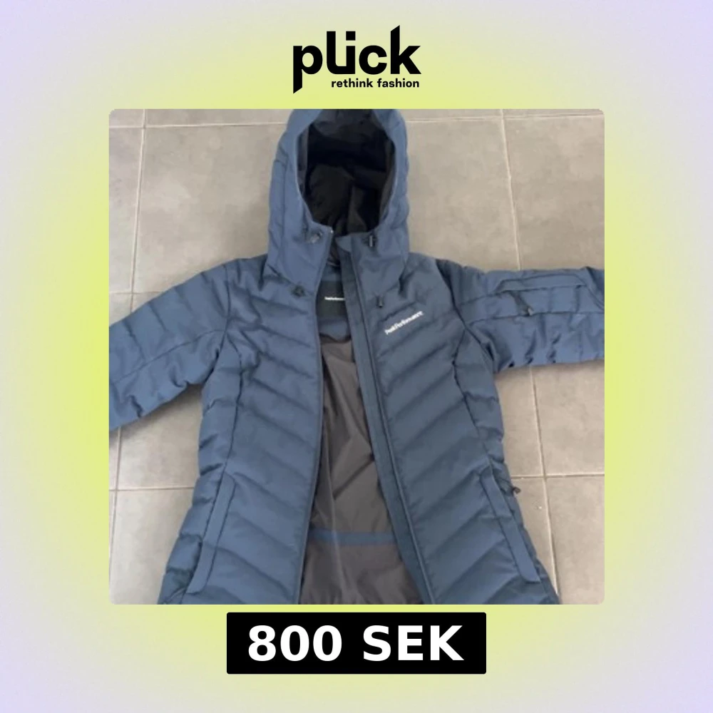 Säljer en snygg mörkblå dunjacka från Peak Performance. Jackan har en praktisk huva och dragkedja framtill. Perfekt för våren, sen vinter och höst. .