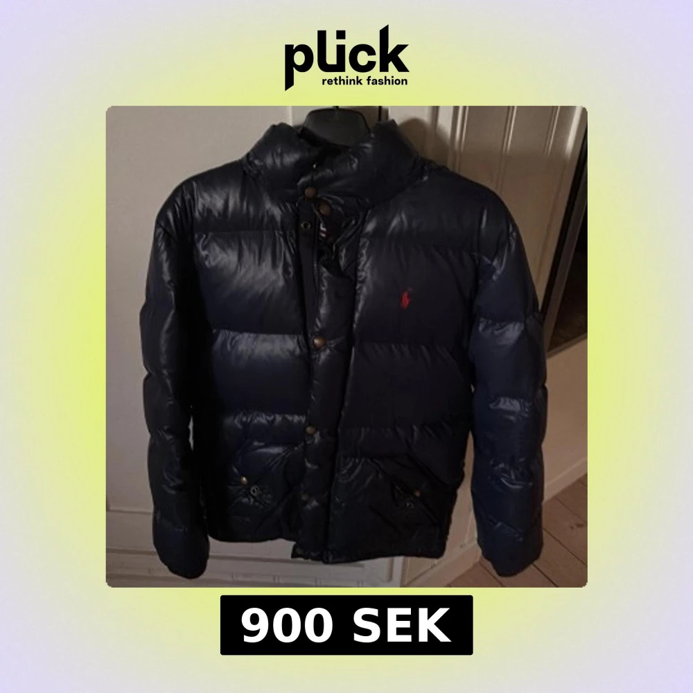 Snygg mörkblå dunjacka från Polo Ralph Lauren med röd broderad logga på bröstet. Jackan har hög krage, tryckknappar och dragkedja framtill. Perfekt för kalla dagar och har en klassisk, puffad look som är både trendig och bekväm.