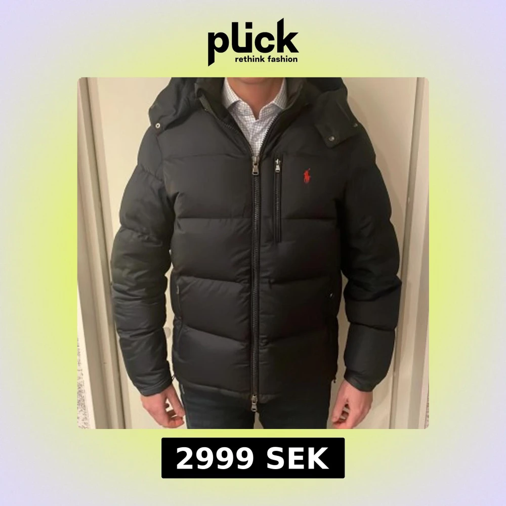 Mörkblå dunjacka från Polo Ralph lauren. Storlek M, modellen är 186.
