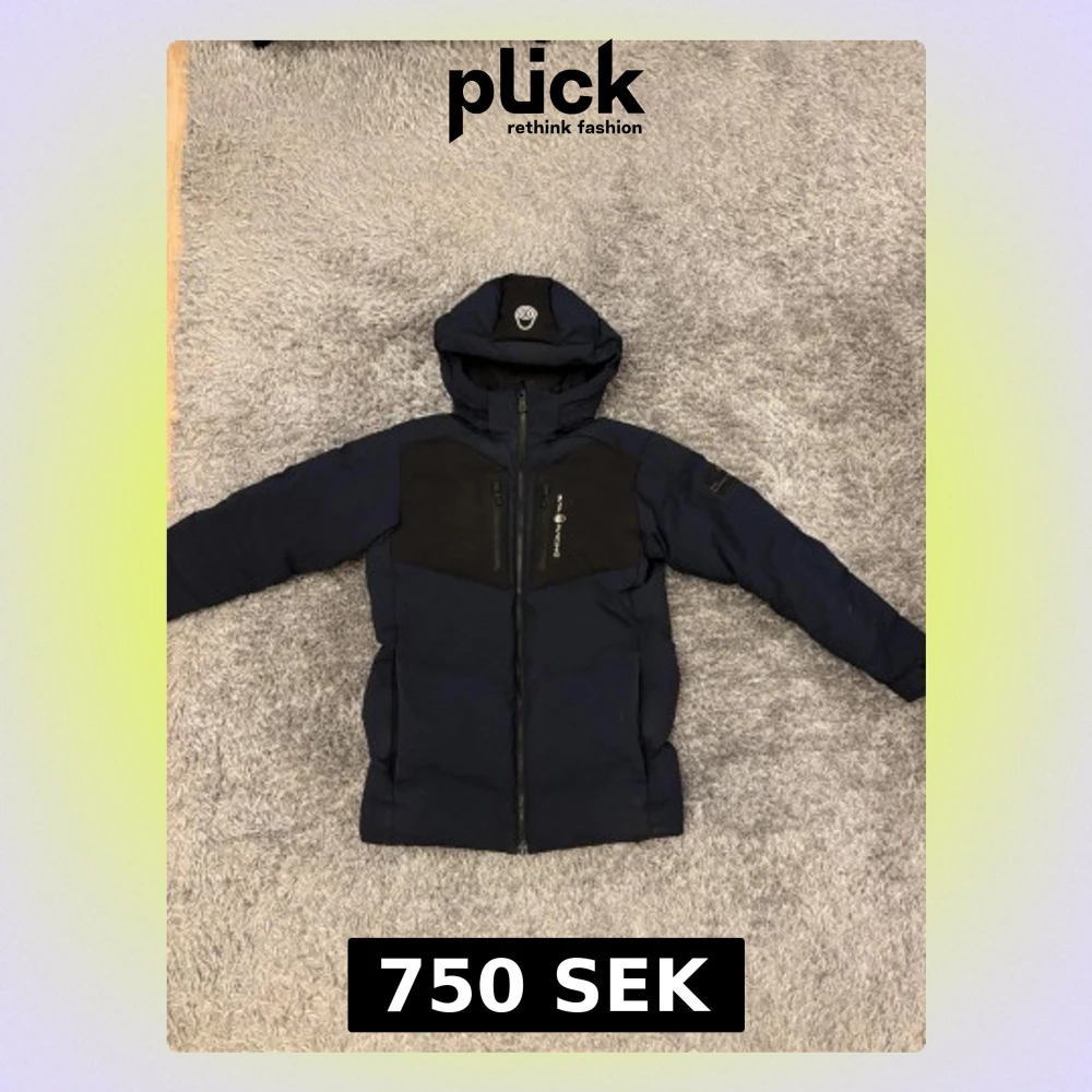 Säljer en mörkblå dunjacka från Sail Racing med svarta detaljer på bröst och huva. Jackan har huva, två bröstfickor med dragkedja och Sail Racing-logga på bröstet. Insidan är fodrad och jackan har en snygg, sportig look som passar perfekt när det är kallt ute. Den är i jätte bra skick