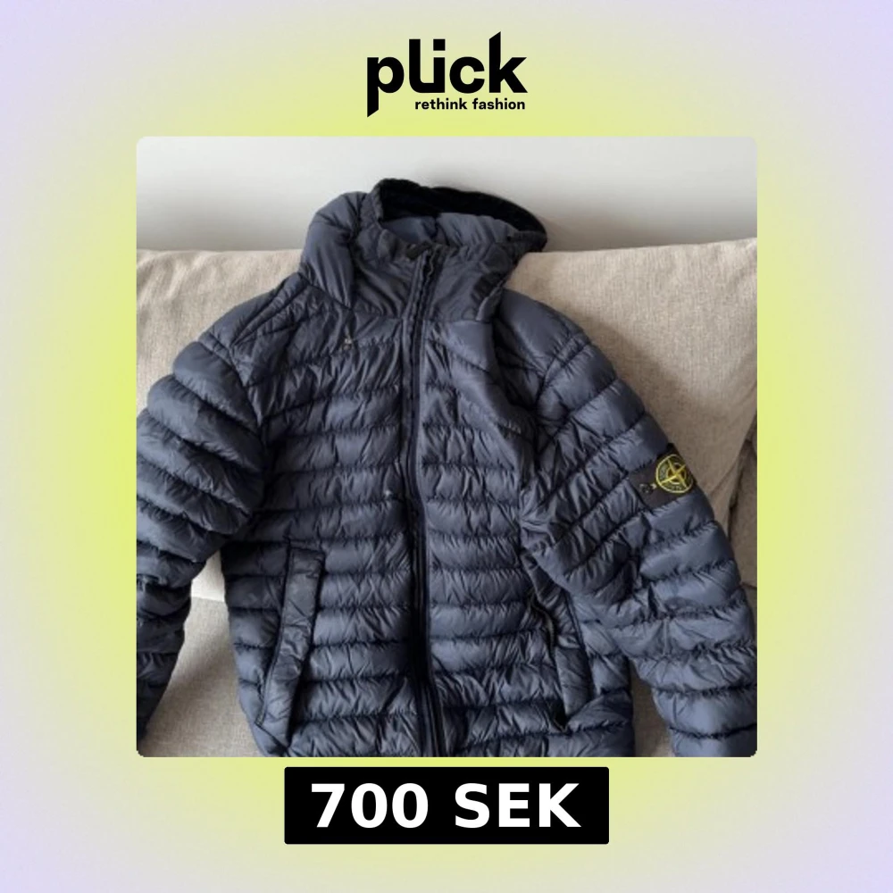 Snygg mörkblå dunjacka från Stone Island med quiltad design och klassisk logotyp på ärmen. Jackan har dragkedja framtill, hög krage och två sidofickor. Perfekt för kyliga dagar och har en modern, sportig look. den är lite sliten men värmer bra. nypris 5000