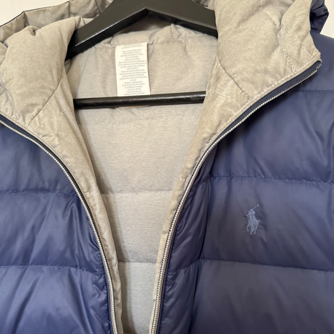 Säljer en snygg mörkblå dunjacka från Polo Ralph Lauren. Jackan har en praktisk huva och dragkedja framtill. Perfekt för kyliga höst- och vinterdagar. Den är i mycket bra skick och har en stilren design med märkets logga på bröstet.