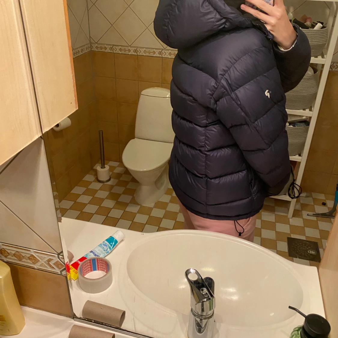 Säljer en mörkblå dunjacka från Peak Performance med huva och dragkedja. Jackan har en normal passform. Perfekt för kalla dagar och har logga på bröstet samt ärmen. Snygg och stilren design som håller dig varm hela vintern. Dam storlek S.