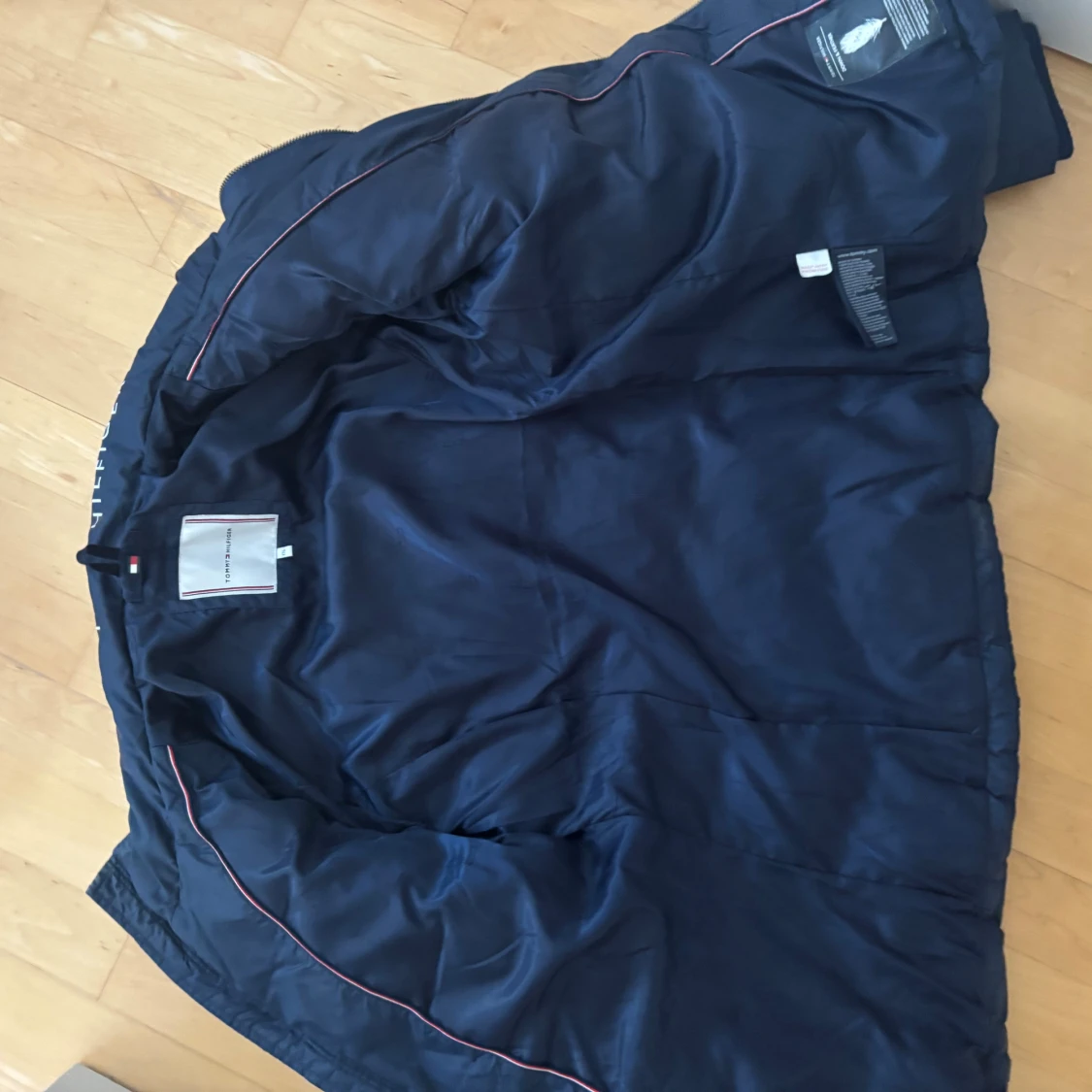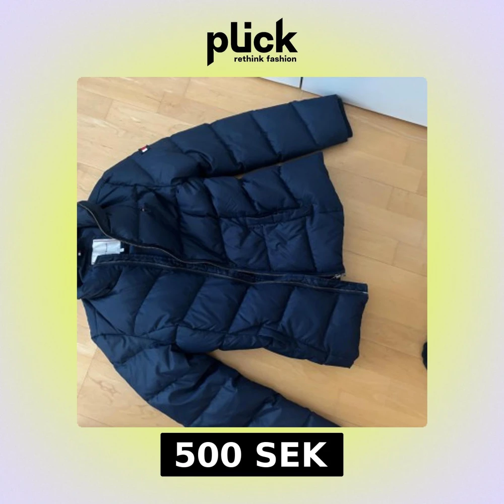Snygg mörkblå dunjacka från Tommy Hilfiger med klassisk quiltad design och dragkedja framtill. Jackan har lång ärm, hög krage och diskreta logodetaljer på axeln. Perfekt för kyliga dagar och enkel att matcha med det mesta.