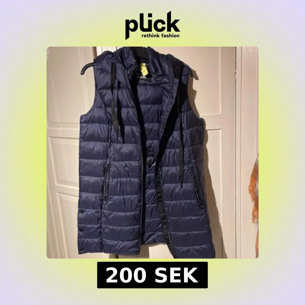 Snygg och praktisk mörkblå dunväst från C&A. Västen har en huva och dragkedja framtill, perfekt för kyliga dagar. Den quiltade designen ger en stilren look.
