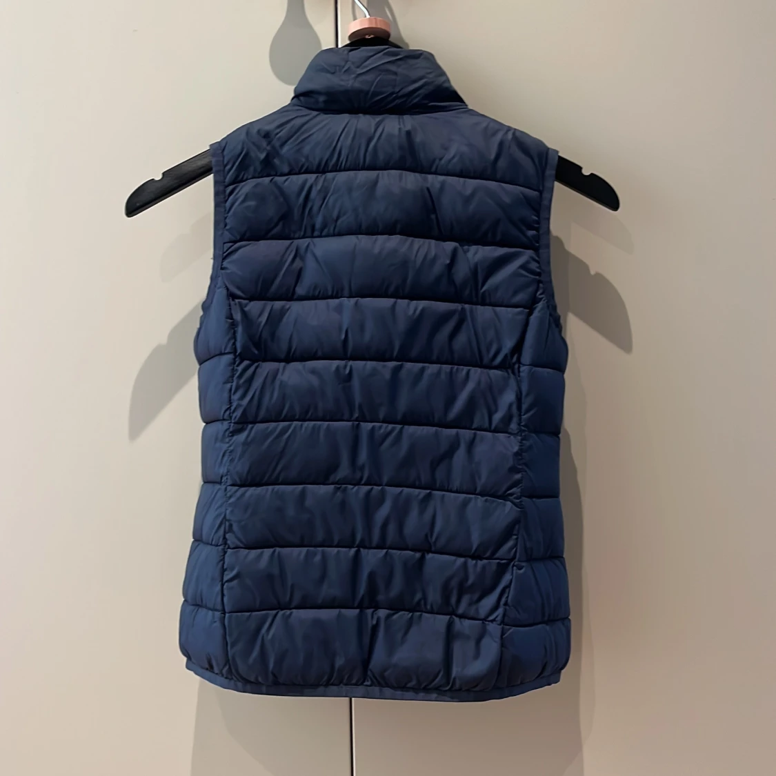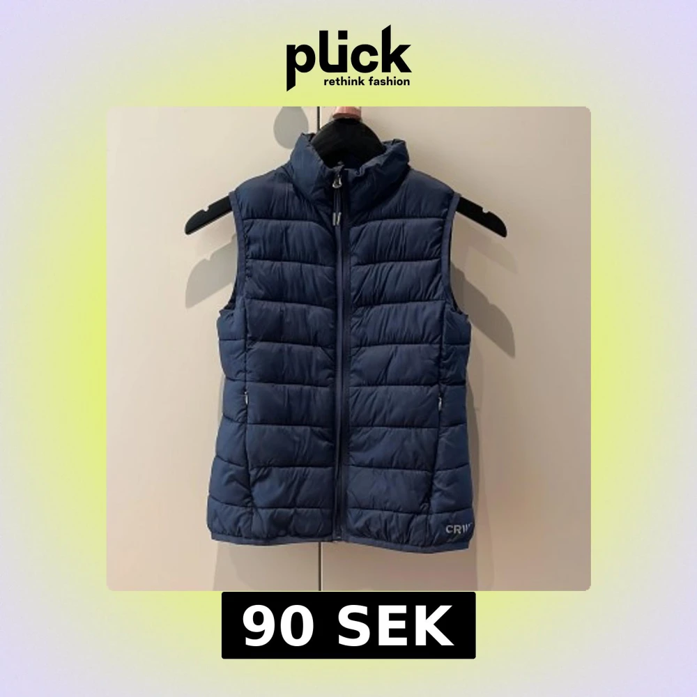 Snygg mörkblå dunväst från CRW med quiltad design och hög krage. Västen har dragkedja framtill och två sidofickor med dragkedja. Perfekt att slänga över en hoodie för extra värme under kyliga dagar.