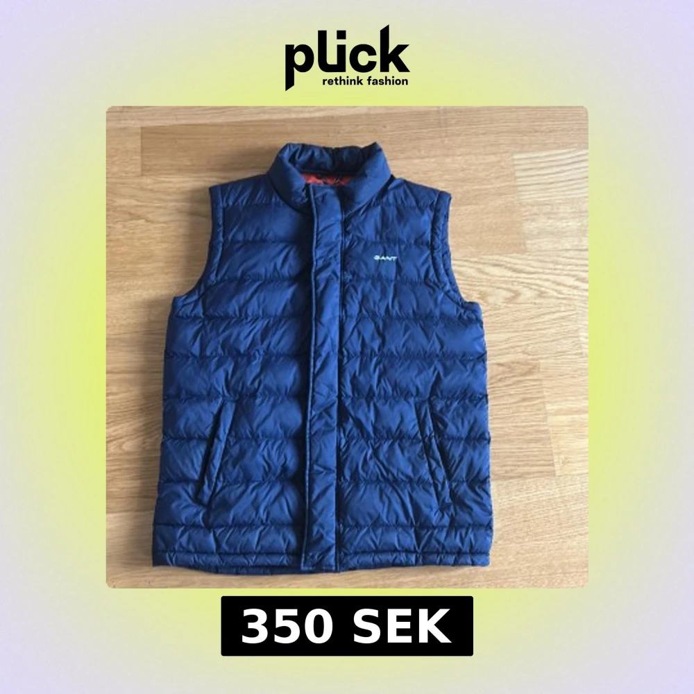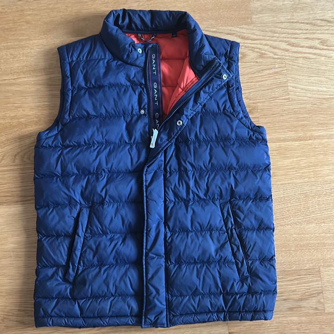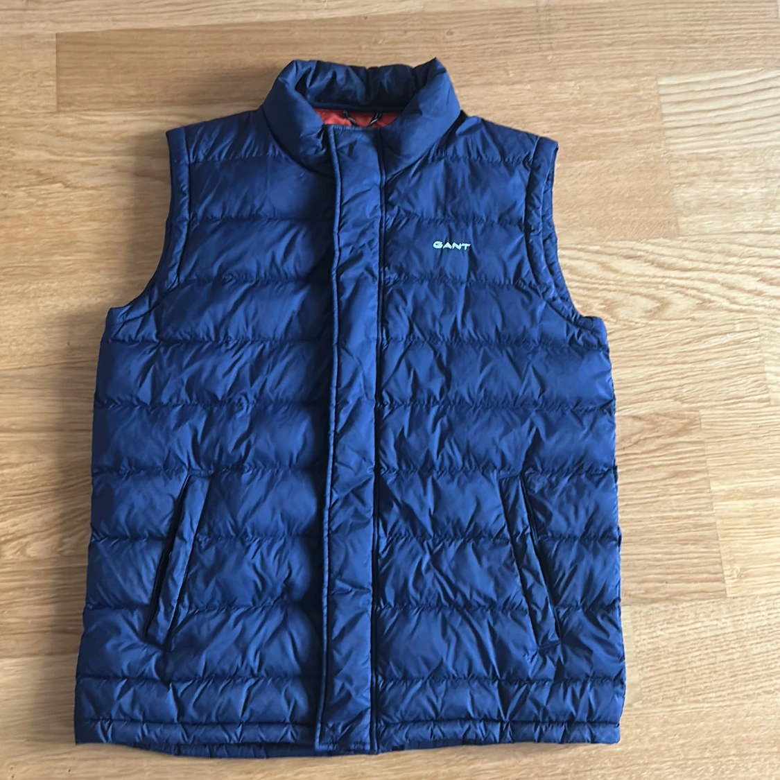 En mörkblå dunväst från Gant. Inget slitage alls. Inga missfärgningar, inga revor osv. Storleken är ”176 cm” men passar som en M.
