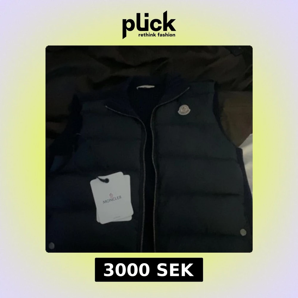 Säljer en snygg mörkblå dunväst från Moncler. Västen har en dragkedja framtill och är perfekt för kyligare dagar. Den har en ribbad krage och Monclers logga på bröstet. Passar perfekt för en stilren look. Det är både tun och dunväst