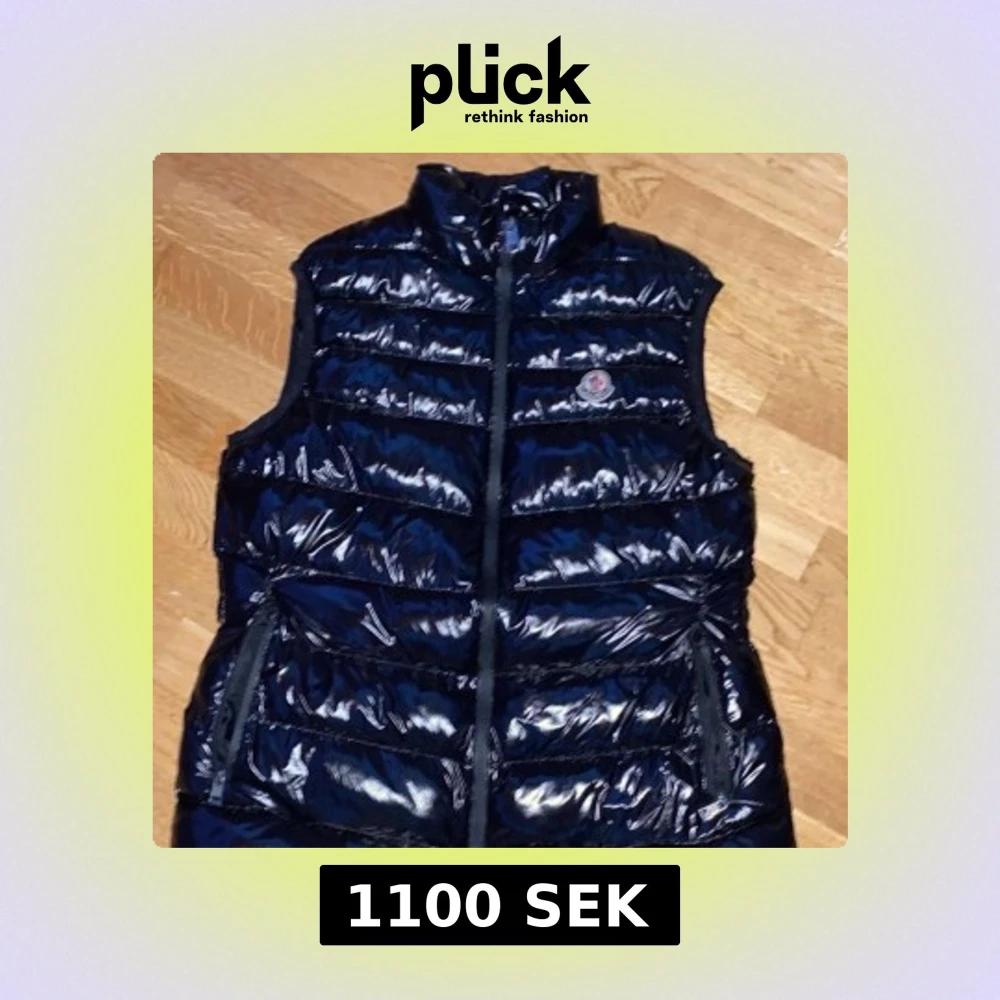 Snygg mörkblå dunväst från Moncler med glansig finish och klassisk logga på bröstet. Västen har ståkrage, dragkedja framtill och två sidofickor med dragkedja. Insidan har en cool serietidningsetikett. Perfekt för lager-på-lager och streetstyle.