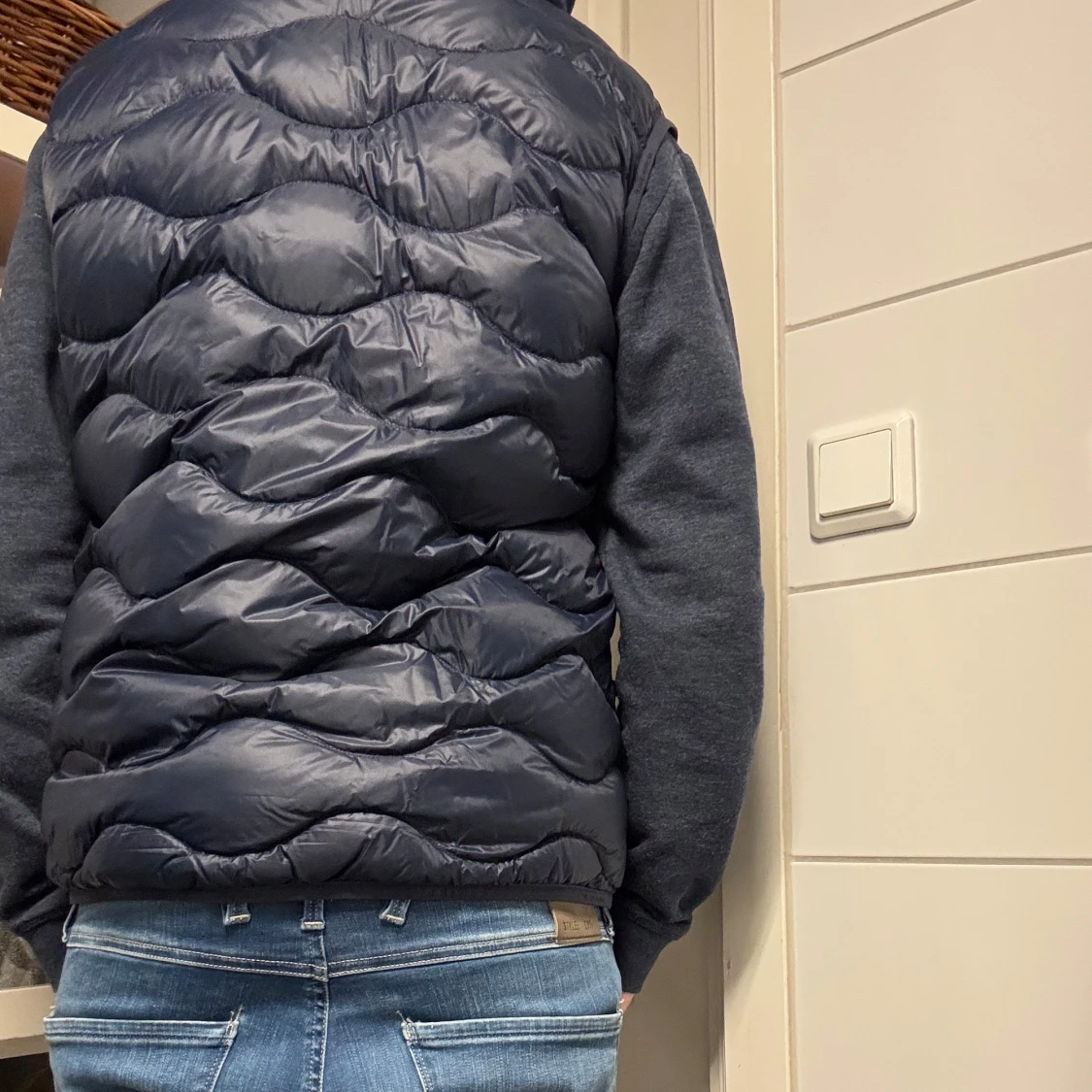 Säljer denna feta mörkblåa dunväst från Peak Performance med dragkedja framtill. Västen har en quiltad design som ger ett modernt utseende. Perfekt för lager-på-lager under kyligare dagar. | Storlek M passar dig mellan 170-182 |