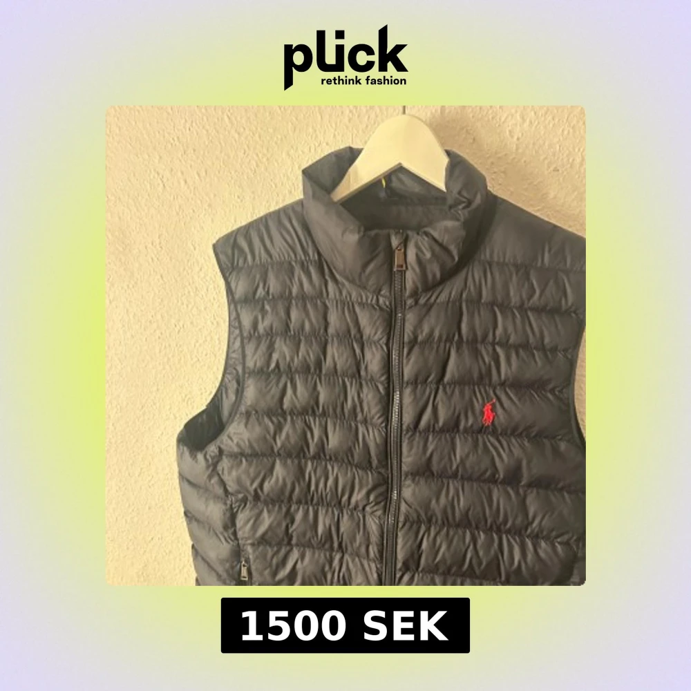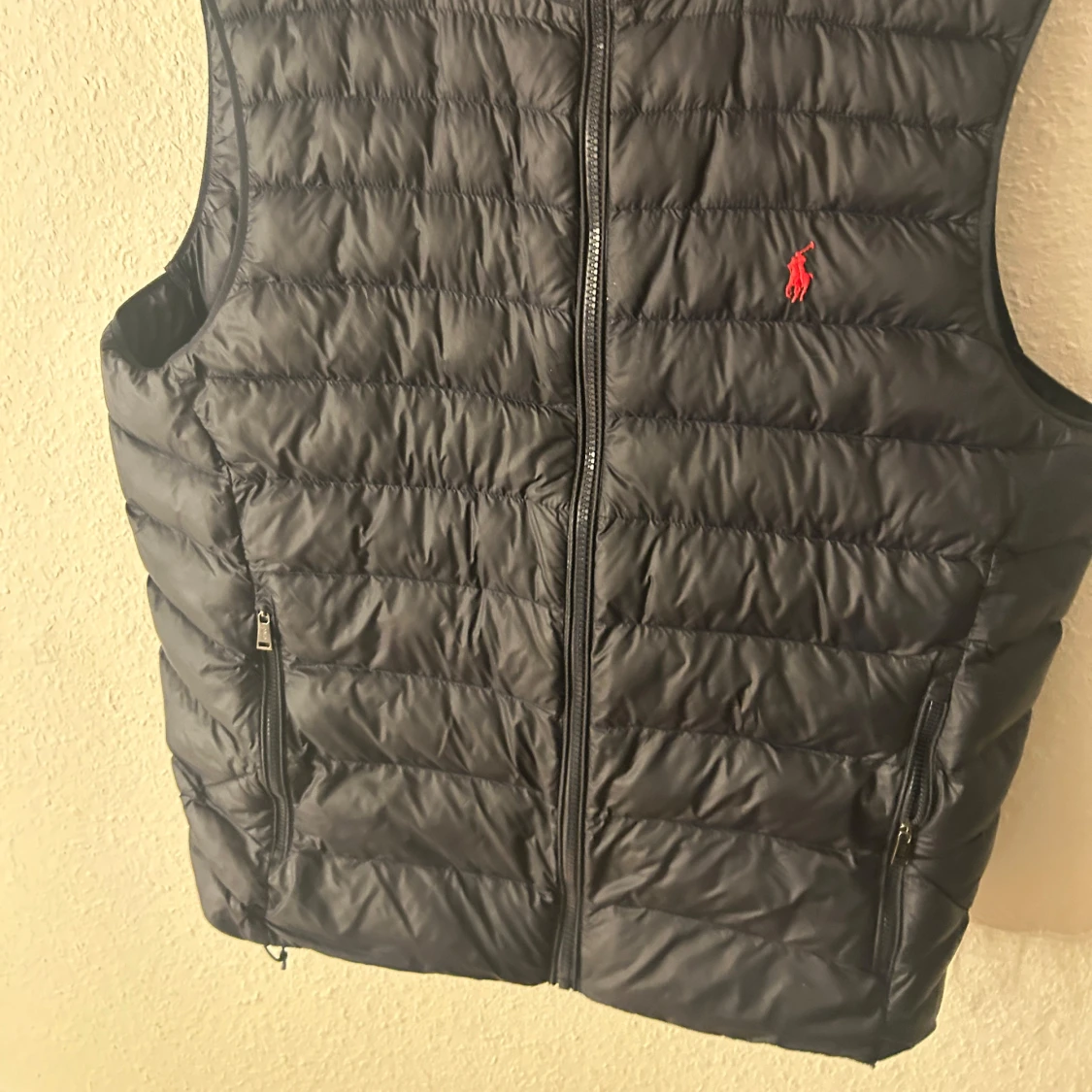 Snygg mörkblå dunväst från Ralph Lauren med broderad logga i rött på bröstet. Perfekt för kyligare dagar men passar också til våren. Använd fåtal gånger