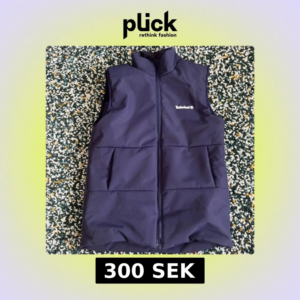Snygg mörkblå dunväst från Timberland med hög krage och dragkedja framtill. Västen har två stora fickor och en stilren design med diskret logga på bröstet.