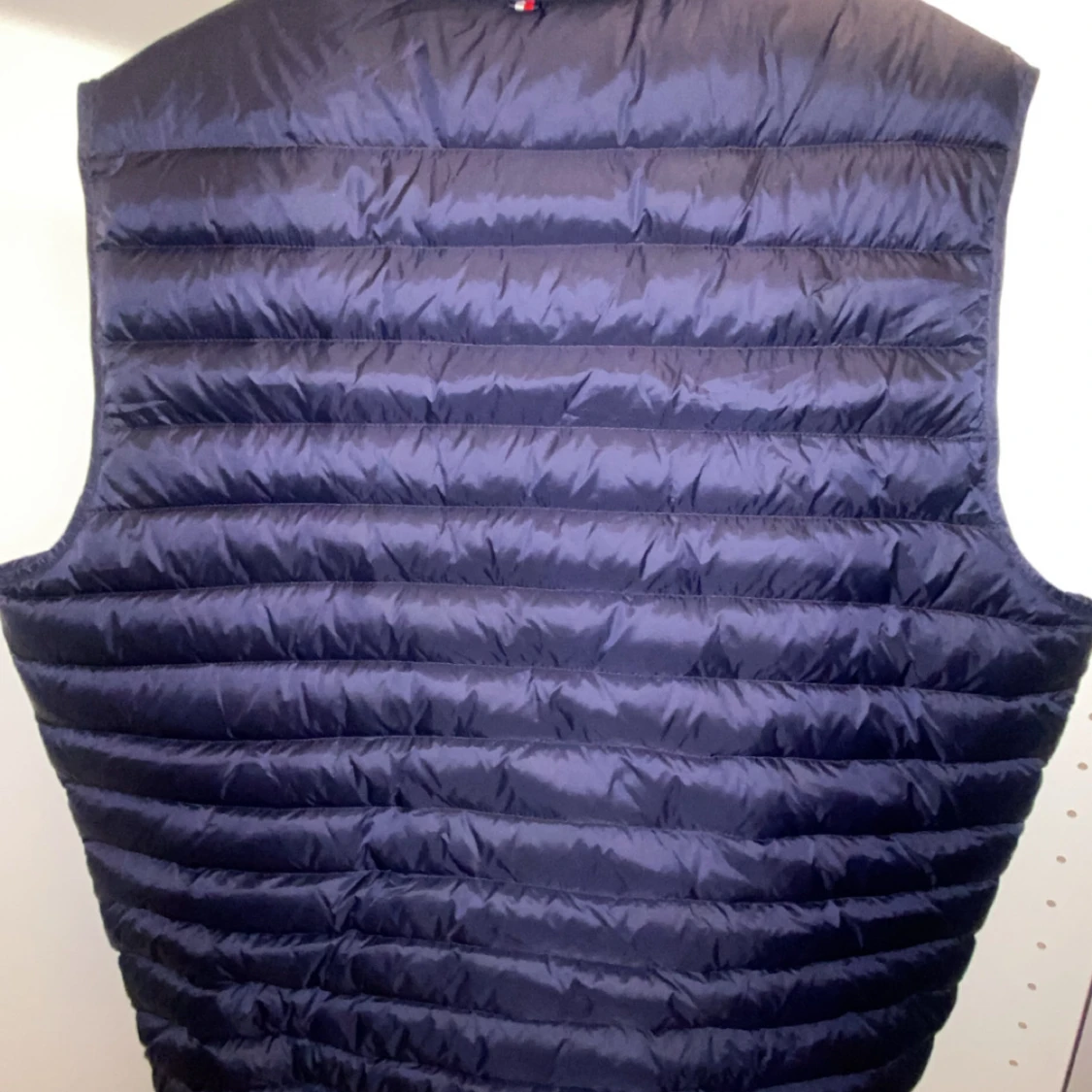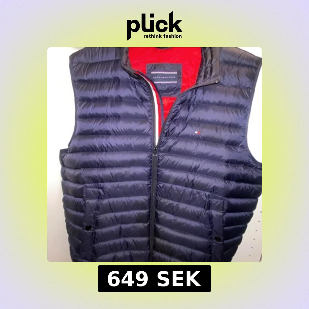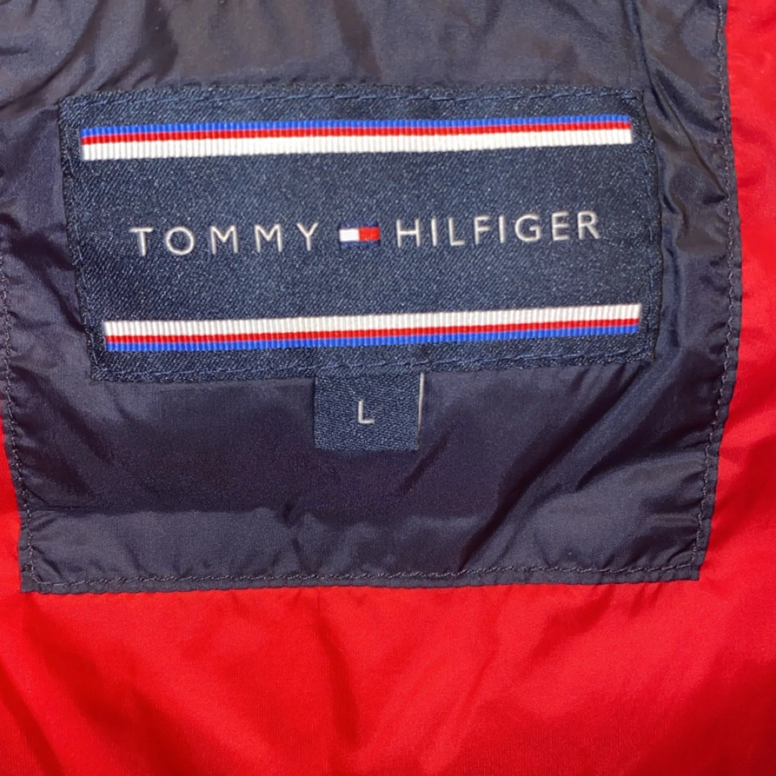 Snygg mörkblå dunväst från Tommy Hilfiger med röd insida och diskret logga på bröstet. Västen är quiltad med horisontella sömmar, har dragkedja framtill och två fickor med knappstängning. Perfekt för lager-på-lager-stil under kyliga dagar. Den är i Storlek L och passar M-L. Har du några funderingar tveka inte på att skriva😆