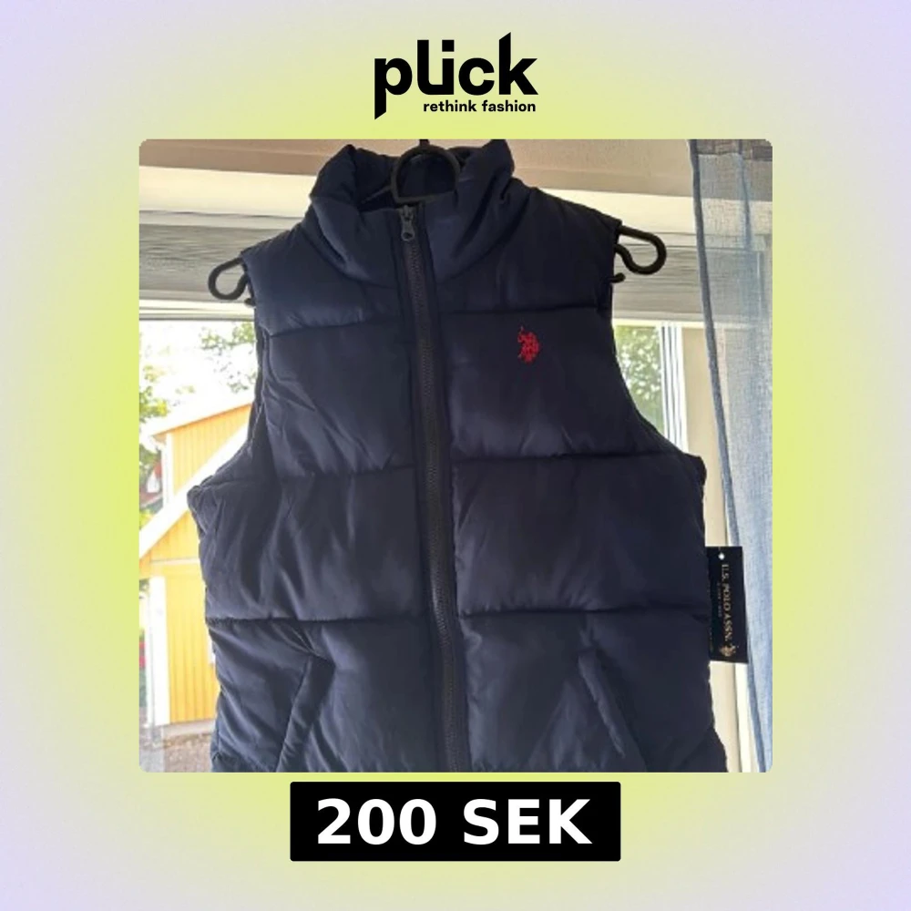 Snygg mörkblå dunväst från U.S. Polo Assn i storlek XS. Västen har hög krage, dragkedja framtill och broderad röd logga på bröstet. Perfekt för lager-på-lager och håller dig varm med sin quiltade design.