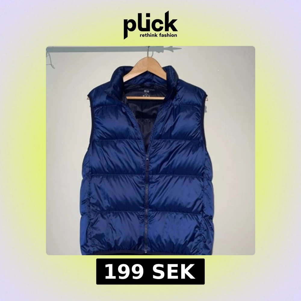 Säljer just nu en mörkblå dunväst från Uniqlo i storlek S. Västen är ultralätt och är i mycket bra skick. Perfekt för kyliga dagar när du vill hålla värmen utan att känna dig tung. Pris 199, nypris 450
