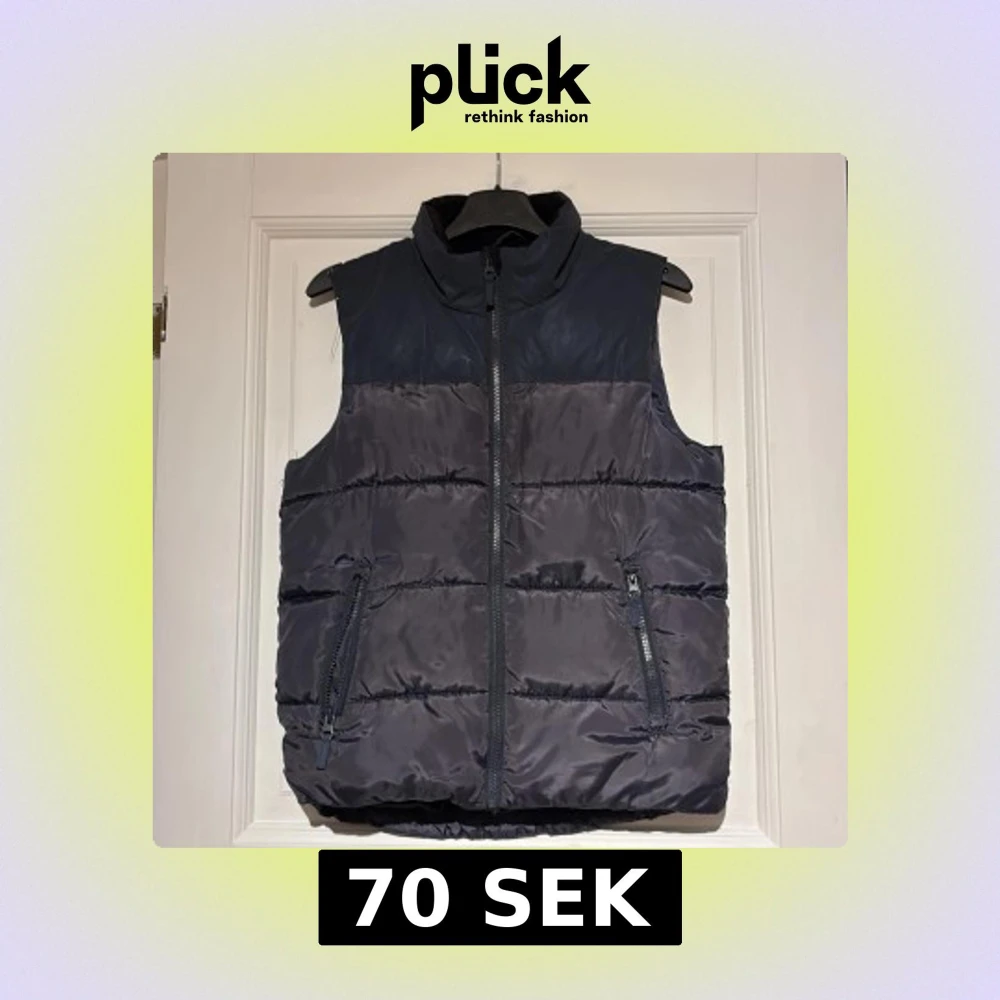 Snygg och praktisk mörkblå dunväst från Wave med dragkedja framtill. Västen har två fickor med dragkedjor och en hög krage för extra värme. Perfekt för kyliga dagar.