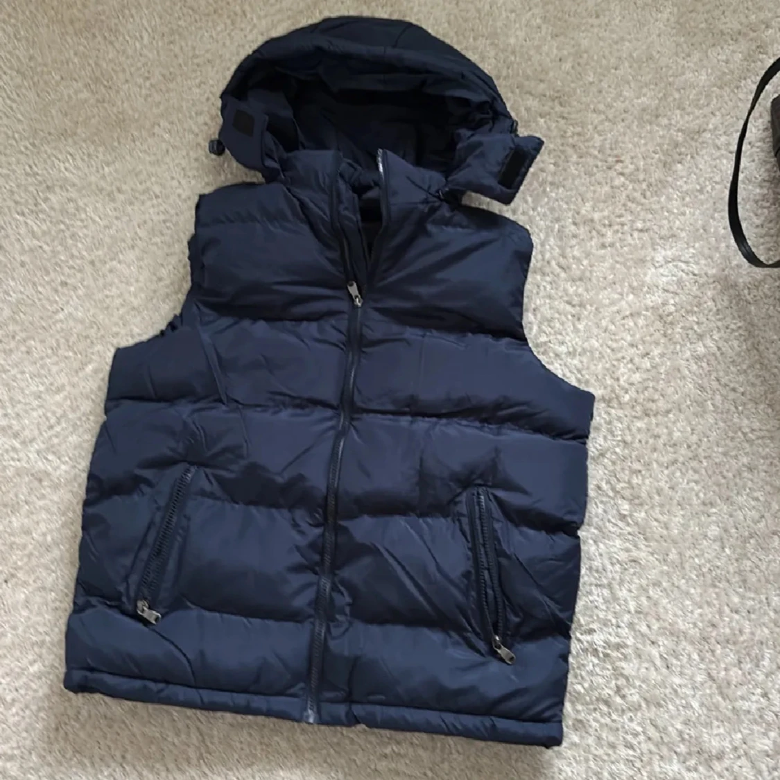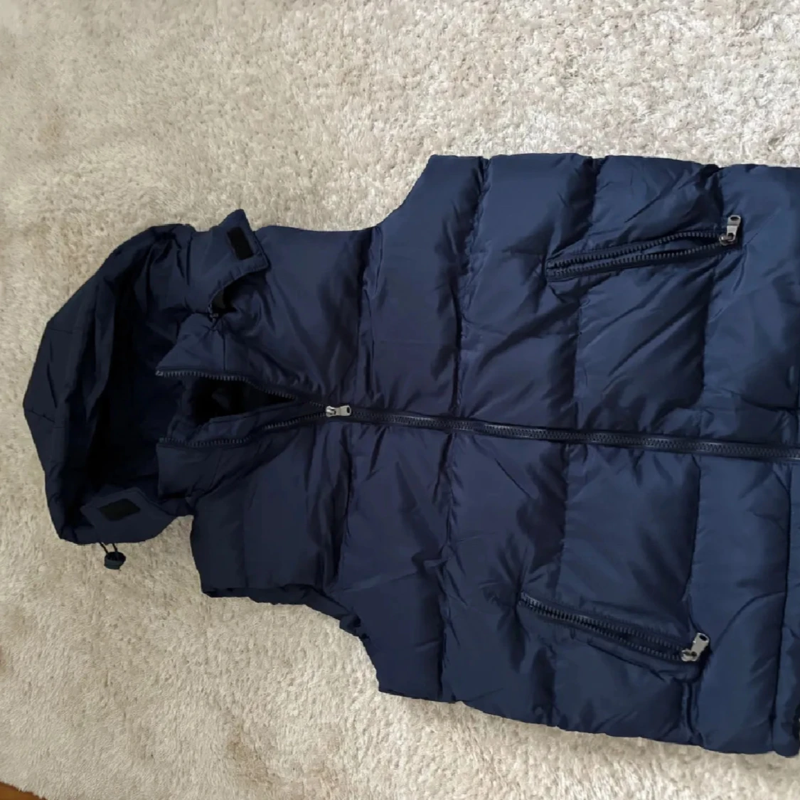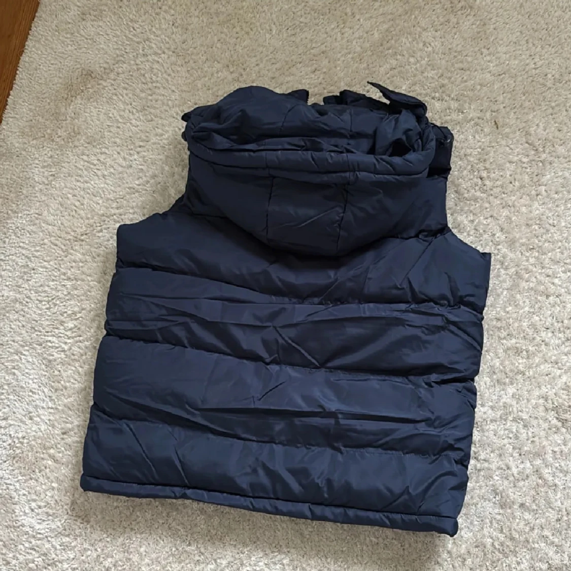 Snygg mörkblå dunväst med avtagbar huva och två praktiska fickor med dragkedja. Västen har quiltad design och hel dragkedja framtill. Perfekt för lager-på-lager och chill höstdagar. Passar dig som gillar sportig och clean stil.