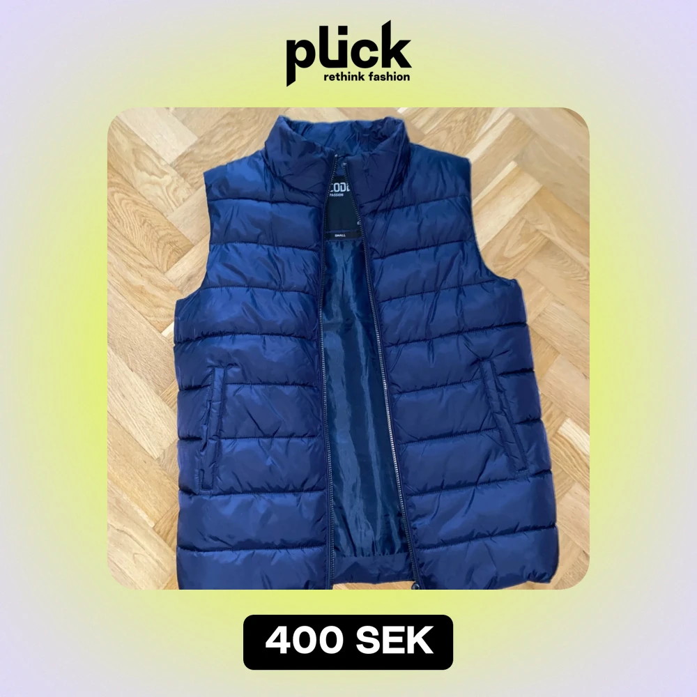 Säljer en snygg mörkblå dunväst i storlek S.