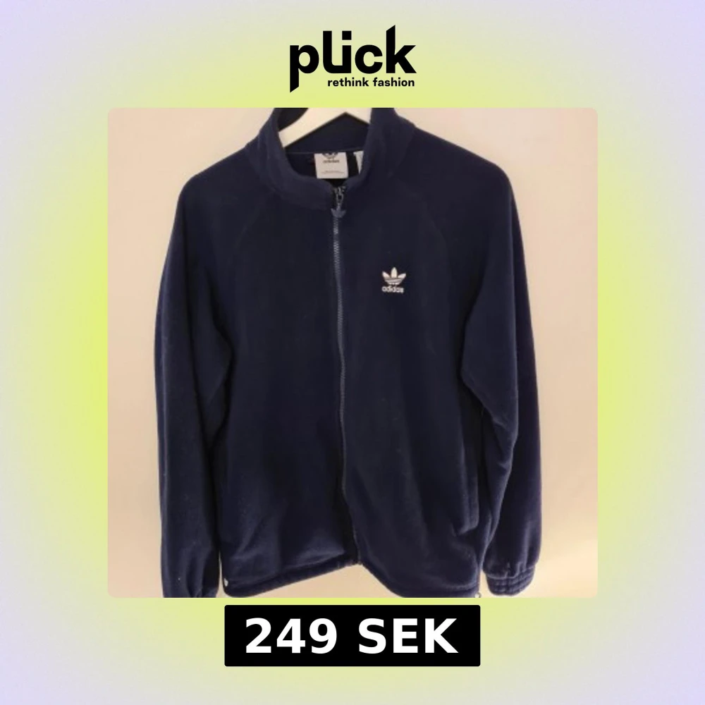Mysig mörkblå fleecejacka från Adidas med dragkedja och broderad logga på bröstet samt stor logga på ryggen. Jackan har hög krage, två sidofickor och är långärmad. Perfekt för kyliga dagar och enkel att styla till streetwear.