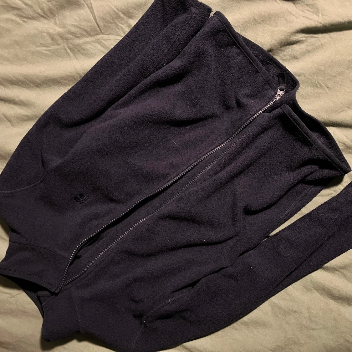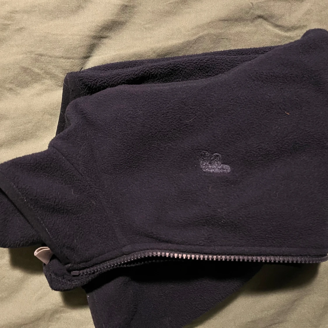 Mörkblå fleecejacka från FIX med dragkedja framtill. Jackan har långa ärmar och är perfekt för kyligare dagar. Den är mjuk och bekväm, idealisk för både vardag och utomhusaktiviteter. Hund och katt finns i hemmet