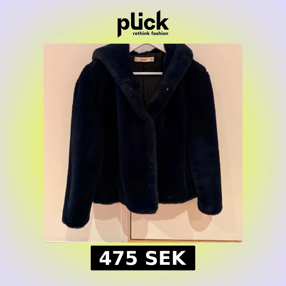 Säljer en mörkblå fuskpälsjacka från Mango med stor, mysig huva. Jackan har en loose passform och är tillverkad i mjukt syntetmaterial som ger en lyxig känsla. Perfekt för kalla dagar och har en stilren look utan synliga detaljer på framsidan.