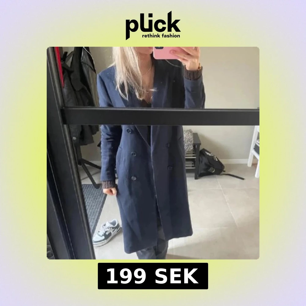 Mörkblå kappa från hm! använd fåtal gånger och är i superbra skick! Inga skavanker Legat ihopvikt därav lite skrynklig!