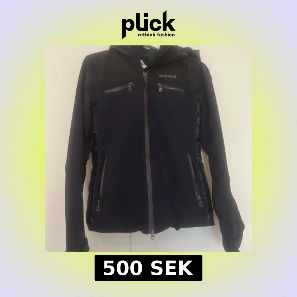 Snygg mörkblå jacka från 8848 Altitude med dragkedja och flera praktiska fickor. Jackan har en mix av material med quiltade detaljer på sidorna och axlarna. Jackan har ett snölås.