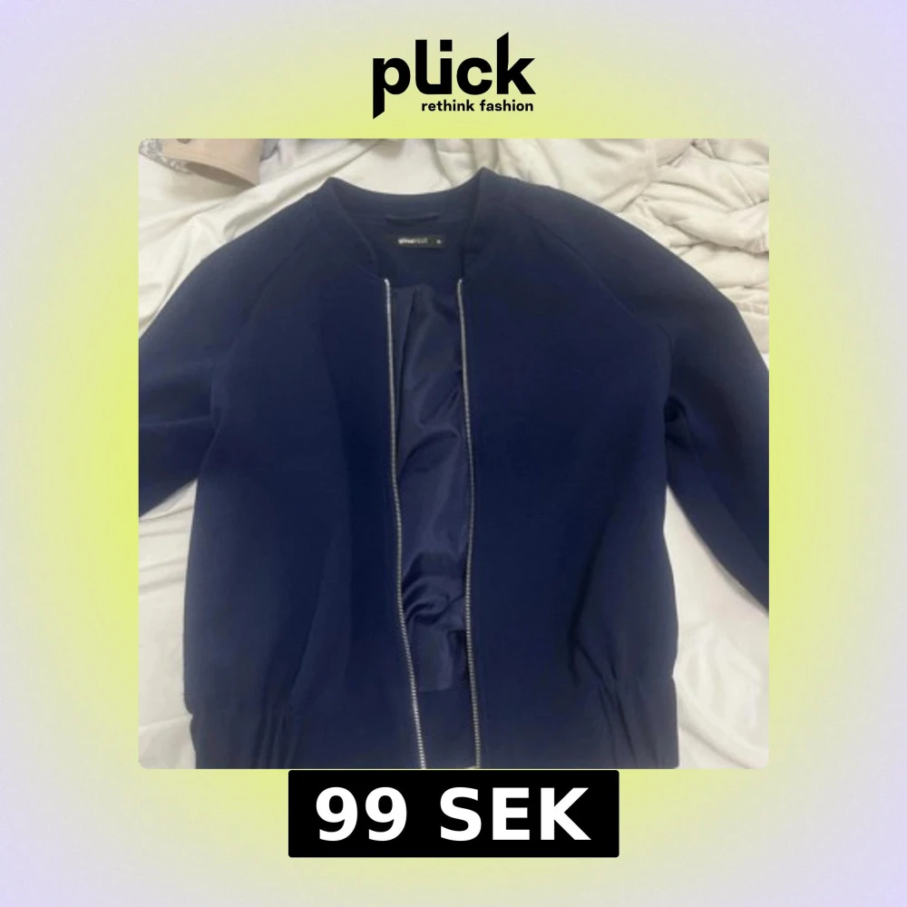Säljer en stilren mörkblå jacka från Gina Tricot i storlek 38. Jackan har dragkedja framtill. Perfekt inför våren samt hösten.