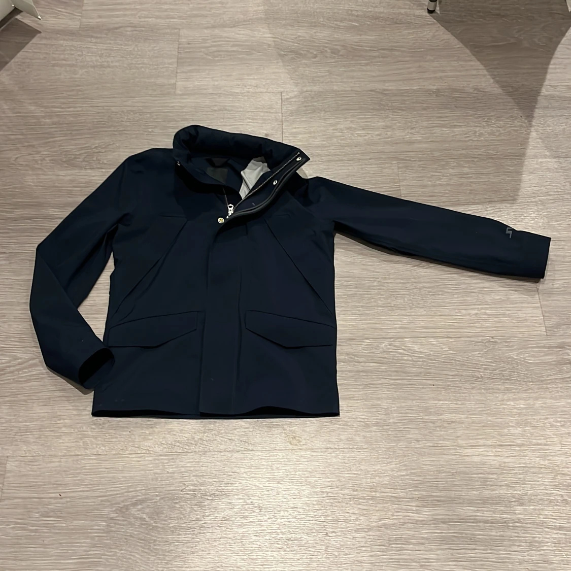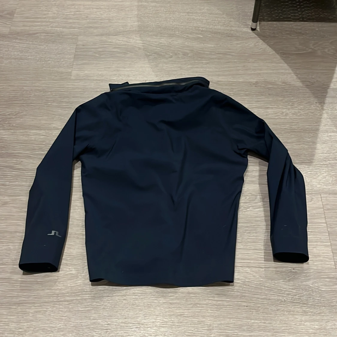 Snygg mörkblå jacka från J.Lindeberg i minimalistisk design. Jackan har vattentät dragkedja, två stora fickor framtill och hög krage. Perfekt för blöta dagar och stilren look. Tillverkad i syntetmaterial och har långa ärmar. Luva tillgår och ligger i kragen . Helt oanvänd och i nytt skick!