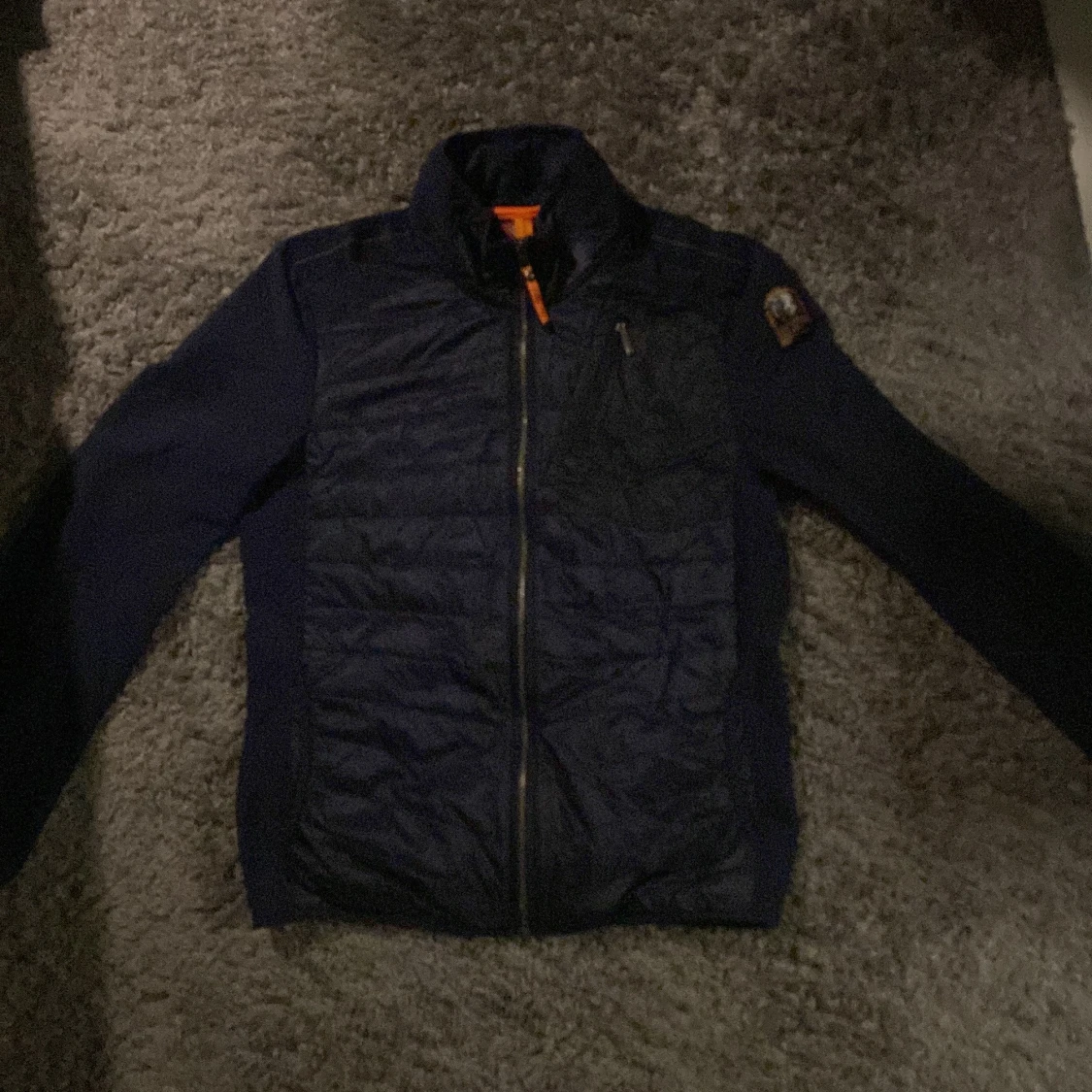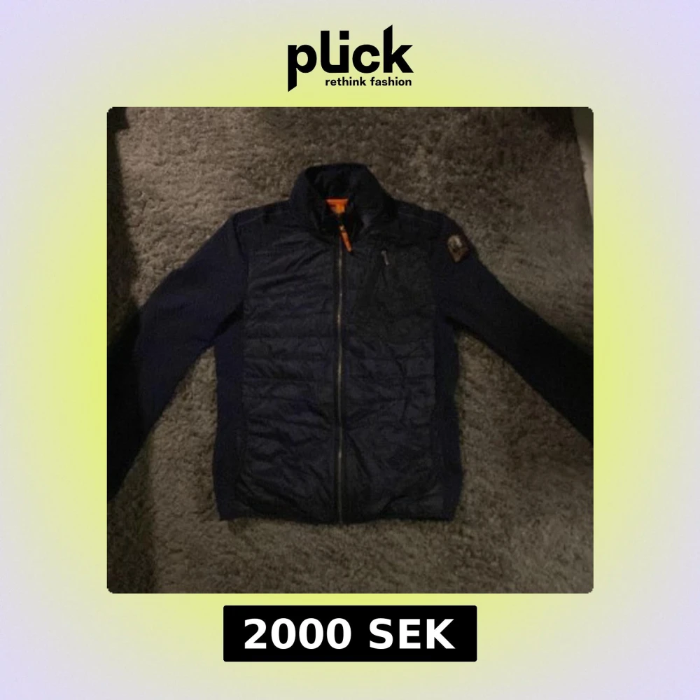 Säljer en snygg mörkblå jacka från Parajumpers. Jackan har en dragkedja framtill och en liten bröstficka med dragkedja. Den har en broderad logga på ärmen och är perfekt för kyligare och varmare dagar. Knappt använd. Prutning vid snabb affär😁