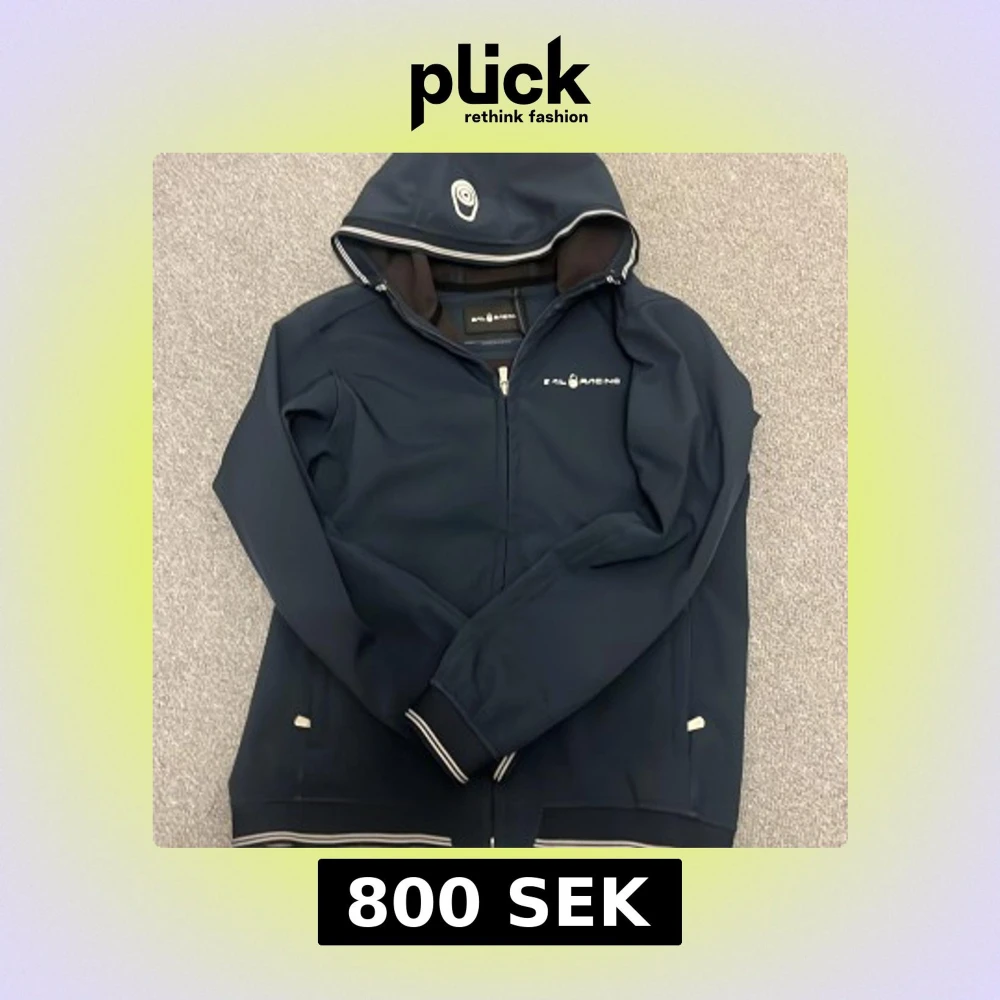 Snygg mörkblå jacka från Sail Racing med dragkedja och huva. Jackan har långa ärmar och vita detaljer vid dragkedjan och ärmsluten. Perfekt för en stilren look.