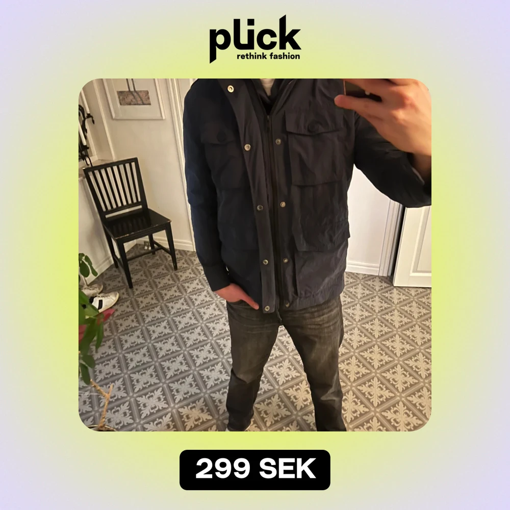 Säljer en snygg mörkblå jacka i bra skick. Den har både dragkedja och knappar framtill, vilket ger extra skydd mot kyla. Jackan har flera praktiska fickor och en hög krage. Perfekt för höst och vår! 🧥
