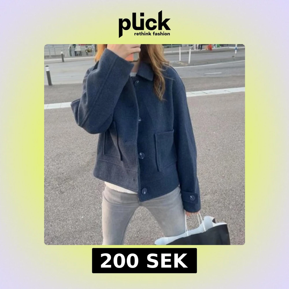 Säljer en mörkblå jacka från 157 med klassisk krage och stora knappar framtill. Jackan har två stora fickor och en boxig, lite loose passform. Perfekt för dig som gillar stilrena och enkla plagg med en modern touch.